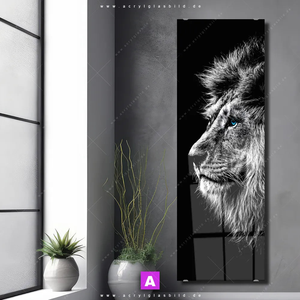 Langweilige Wände sind wie ein trockenes Toastbrot ohne Butter und Marmelade - einfach fade und nicht sehr appetitlich. Aber zum Glück haben wir das perfekte Acrylglasbild für dich: Mit unserem Kunstwerk Löwe mit blauen Augen im Format Schmal wird deine Wand zur Leinwand und dein Raum zum Blickfang.