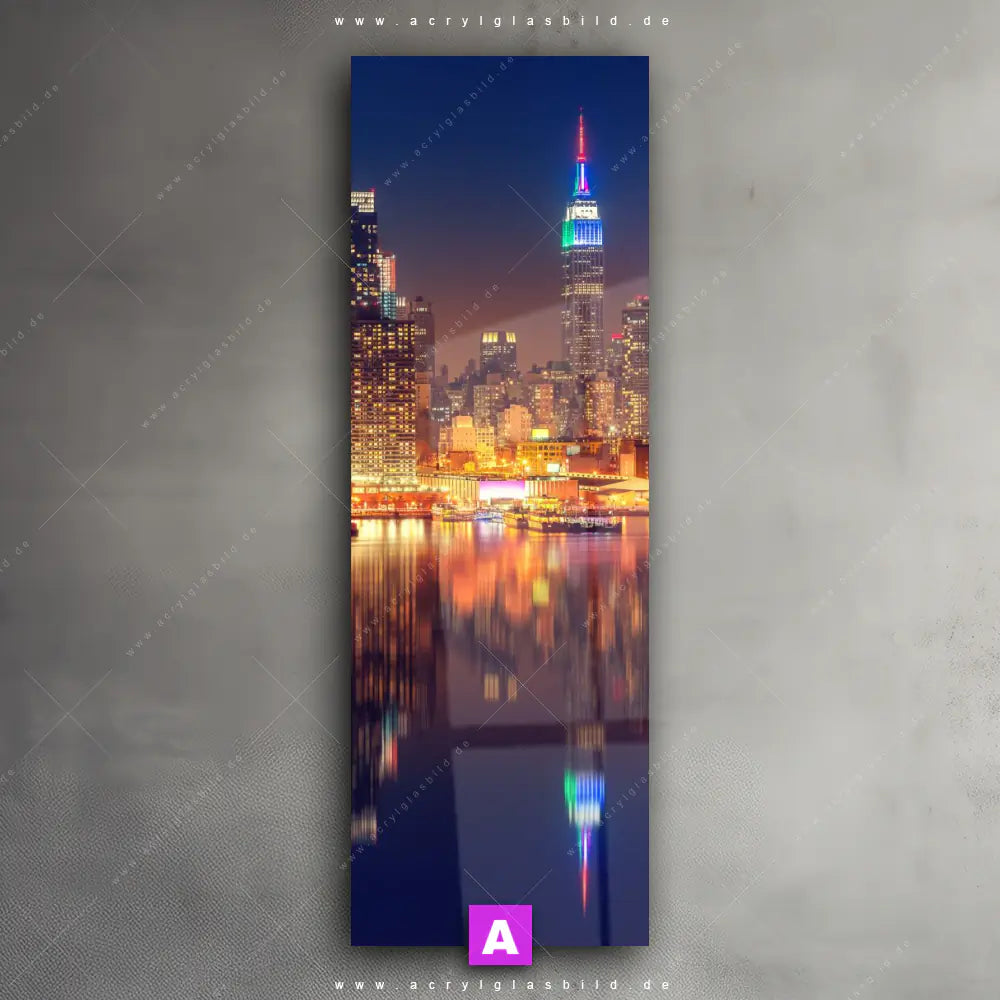 <b>Produktart:</b> Acrylglasbild | Glasbild | Wandbild aus Kunstglas | <b> Motiv:</b> Manhattan bei Nacht | <b> Bildausrichtung:</b> Schmal | <b> Max. Motiv-Größe:</b> 711cm breit | 400cm hoch | <b> Verfügbare Formate: </b> Quadrat, Querformat, Hochformat, Panorama, Schmal, Rund | <b> Kategorie:</b> Städte - Skylines | <b> Farben:</b> Blau, Braun, Orange | <b> Kunstformen:</b> Fotografie | <b> Kunststile:</b> Modern Art, Natürlich - Realistisch