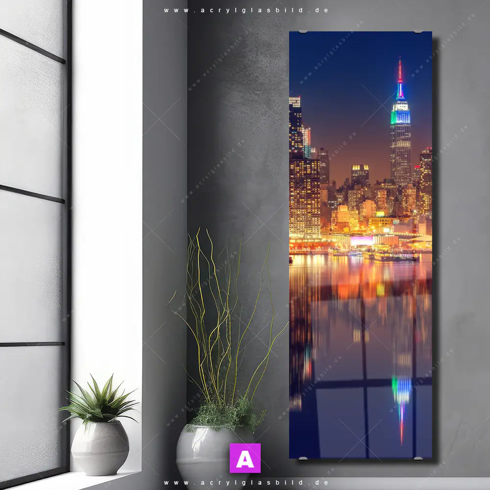 Langweilige Wände sind wie ein trockenes Toastbrot ohne Butter und Marmelade - einfach fade und nicht sehr appetitlich. Aber zum Glück haben wir das perfekte Acrylglasbild für dich: Mit unserem Kunstwerk Manhattan bei Nacht im Format Schmal wird deine Wand zur Leinwand und dein Raum zum Blickfang.