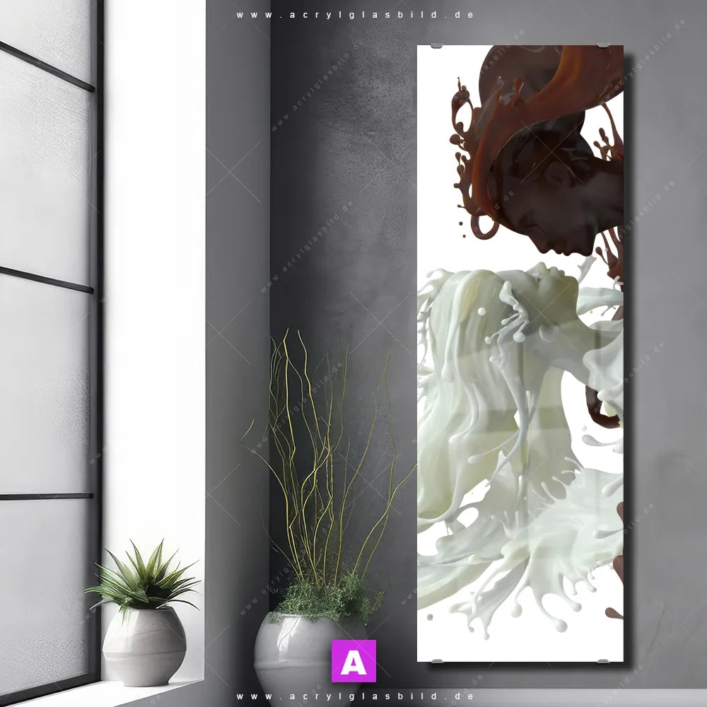 <b>Produktart:</b> Acrylglasbild | Glasbild | Wandbild aus Kunstglas | <b> Motiv:</b> Milch küsst Schokolade | <b> Bildausrichtung:</b> Schmal | <b> Max. Motiv-Größe:</b> 300cm breit | 450cm hoch | <b> Verfügbare Formate: </b> Quadrat, Querformat, Hochformat, Panorama, Schmal, Rund | <b> Kategorie:</b> Essen - Trinken | <b> Farben:</b> Weiss, Braun | <b> Kunstformen:</b> Digitale Kunst | <b> Kunststile:</b> Mixed Media, Modern Art