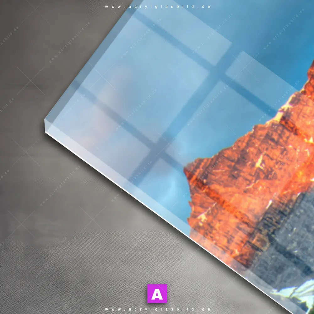 UV-Direktdruck | 5mm starke, transparente Acrylglasplatte | von hinten bedruckt | durchscheinendes Motiv | vollflächig mit weißer Schicht hinterlegt | bemerkenswerte Farbbrillanz | hohe Schärfe | erstaunliche Tiefenwirkung