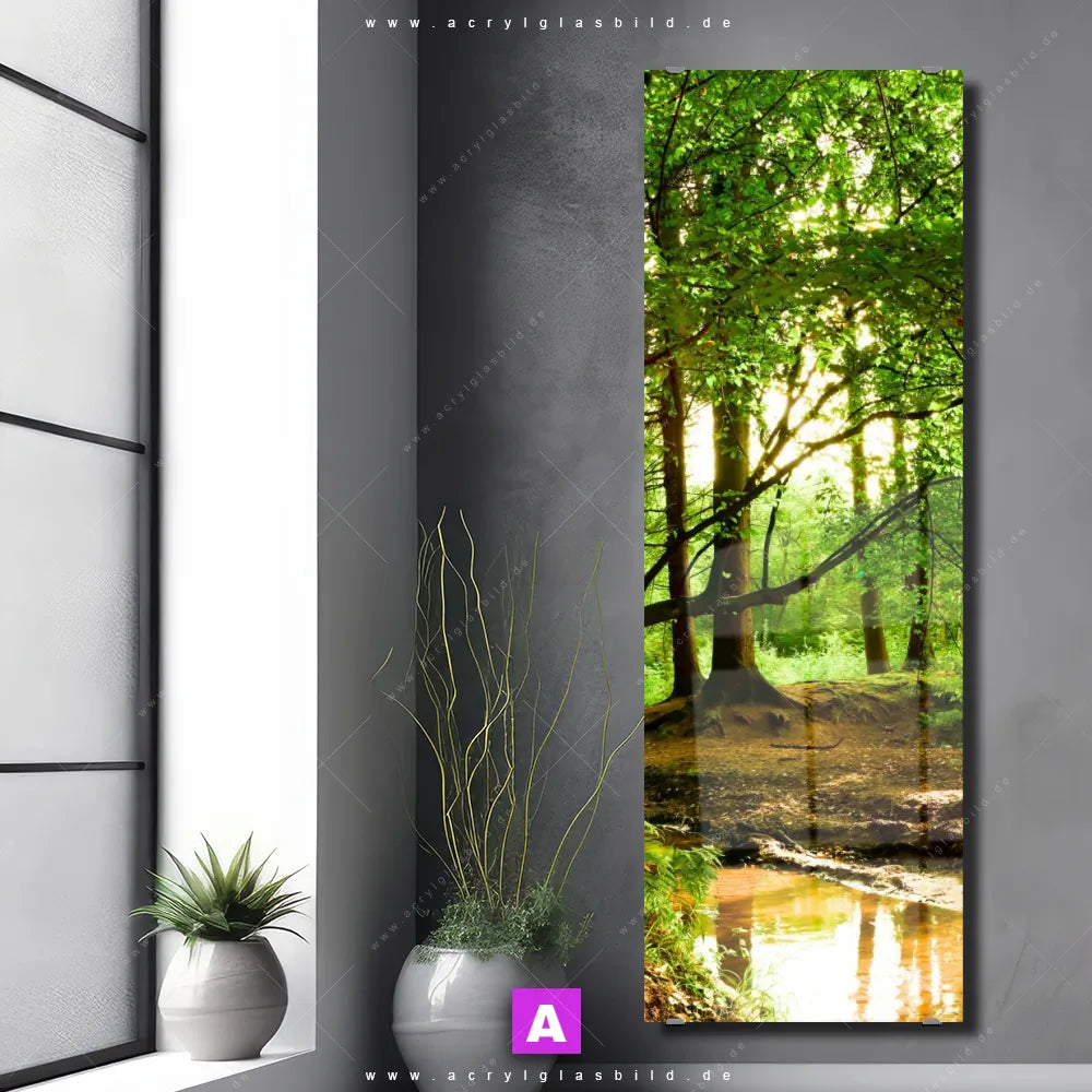Vergiss also langweilige weiße Wände und entscheide dich für das Acrylglasbild Bachlauf im tiefen Wald, gestaltet als Fotografie, das deinem Raum Charakter verleiht und dich jeden Tag aufs Neue inspiriert. Mit diesem Landschaften, Wald - Bäume Acrylglasbild wird deine Wand zur Kunst und du zum Kunstliebhaber.
