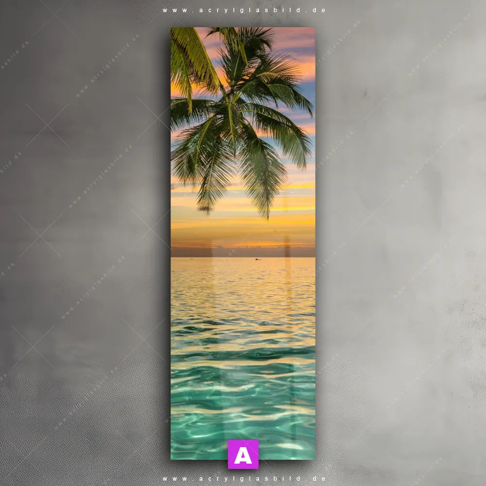 <b>Produktart:</b> Acrylglasbild | Glasbild | Wandbild aus Kunstglas | <b> Motiv:</b> Paradiesische Insel | <b> Bildausrichtung:</b> Schmal | <b> Max. Motiv-Größe:</b> 360cm breit | 240cm hoch | <b> Verfügbare Formate: </b> Quadrat, Querformat, Hochformat, Panorama, Schmal, Rund | <b> Kategorie:</b>  Landschaften, Strand - Meer | <b> Farben:</b>  Orange, Grün, Blau | <b> Kunstformen:</b>  Fotografie | <b> Kunststile:</b>  Retro - Vintage, Natürlich - Realistisch