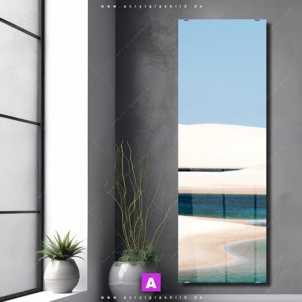 Langweilige Wände sind wie ein trockenes Toastbrot ohne Butter und Marmelade - einfach fade und nicht sehr appetitlich. Aber zum Glück haben wir das perfekte Acrylglasbild für dich: Mit unserem Kunstwerk Sanddünen und Seen im Format Schmal wird deine Wand zur Leinwand und dein Raum zum Blickfang.