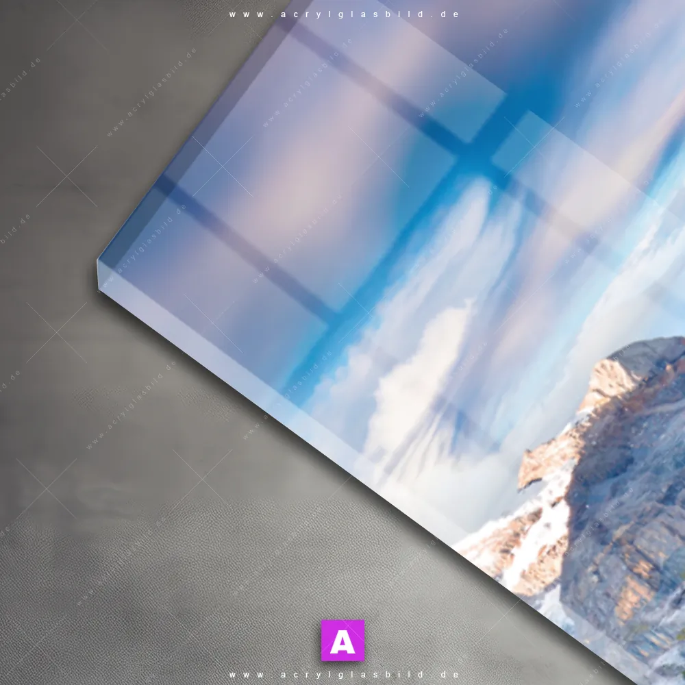 Das Motiv Sommermorgen am Bergsee wird im UV-Direktdruck in den Farben Grün, Türkis auf die Rückseite einer 5mm starken, transparenten Acrylglasplatte gedruckt. Das durchscheinende Motiv Bergsee mit Wolkenspiegelung im Natürlich - Realistisch Stil wird anschließend vollflächig mit einer weißen Schicht hinterlegt. Das Landschaften Acrylglasbild | Schmal erhält so eine bemerkenswerte Farbbrillanz, hohe Schärfe und erstaunliche Tiefenwirkung.