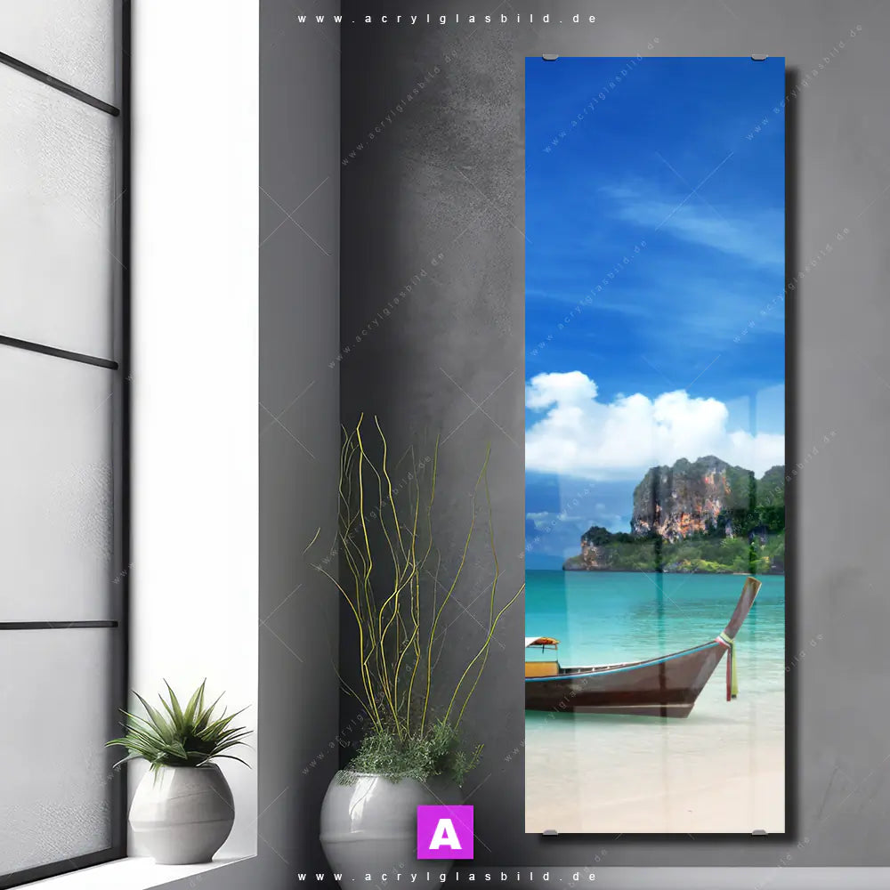 Langweilige Wände sind wie ein trockenes Toastbrot ohne Butter und Marmelade - einfach fade und nicht sehr appetitlich. Aber zum Glück haben wir das perfekte Acrylglasbild für dich: Mit unserem Kunstwerk Strand in Thailand im Format Schmal wird deine Wand zur Leinwand und dein Raum zum Blickfang.