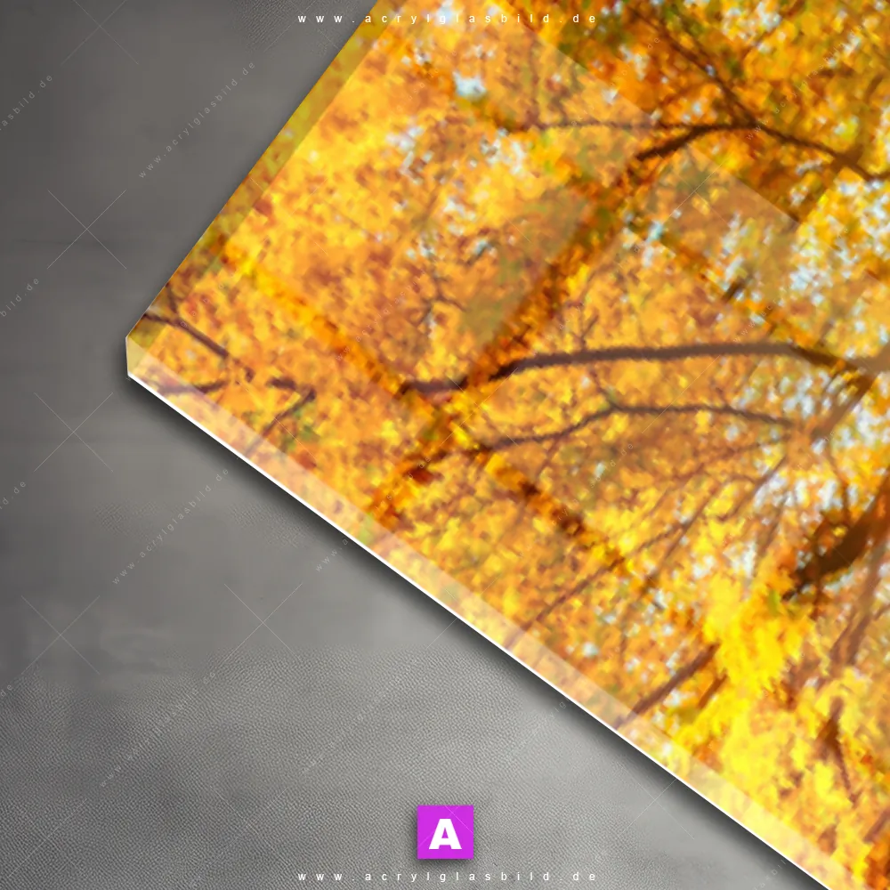Das Motiv Waldlandschaft im Herbst wird im UV-Direktdruck in den Farben Braun, Beige, Ocker auf die Rückseite einer 5mm starken, transparenten Acrylglasplatte gedruckt. Das durchscheinende Motiv Sonnenstrahlen im herbstlichen Wald im Natürlich - Realistisch, Modern Art Stil wird anschließend vollflächig mit einer weißen Schicht hinterlegt. Das Landschaften, Wald - Bäume Acrylglasbild | Schmal erhält so eine bemerkenswerte Farbbrillanz, hohe Schärfe und erstaunliche Tiefenwirkung.