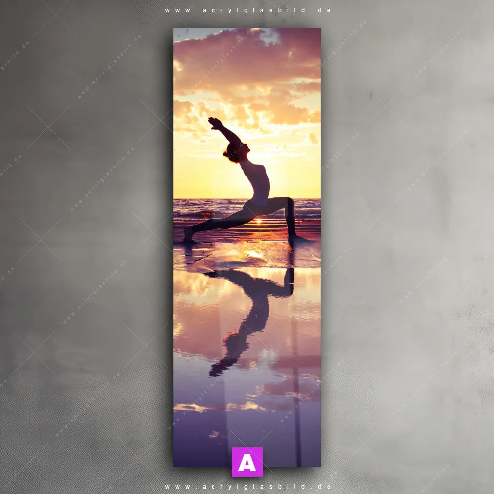 Acrylglasbild | Yoga am lila Strand | Schmal