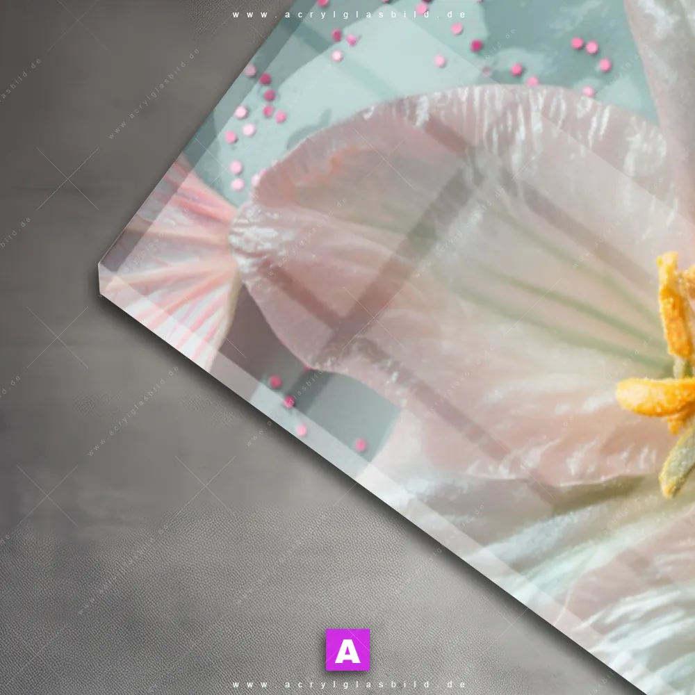 Das Motiv Zarte Blütenpracht wird im UV-Direktdruck in den Farben Rosa, Weiss, Türkis auf die Rückseite einer 5mm starken, transparenten Acrylglasplatte gedruckt. Das durchscheinende Motiv Frühlingszauber in sanften Tönen im Floral, Natürlich - Realistisch Stil wird anschließend vollflächig mit einer weißen Schicht hinterlegt. Das Blumen - Botanik Acrylglasbild | Schmal erhält so eine bemerkenswerte Farbbrillanz, hohe Schärfe und erstaunliche Tiefenwirkung.