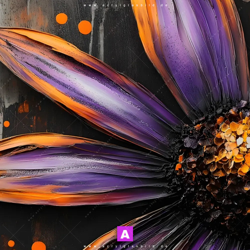 Unser Acrylglasbild Blütenbild im modernen Stil aus der Kategorie Blumen - Botanik wird deinem Raum einen Hauch von Luxus verleihen, und du wirst nie wieder von Langeweile geplagt sein. Und wenn du nach einem Bild mit Pflanze, Natur, Blüten, Blumen, Nahaufnahme suchst, empfehlen wir dir unser Acrylglasbild Blumenmalerei in kräftigen Farben in den aufregenden Farben Schwarz, Lila, Orange, Grau. Mit seiner Gestaltung als Kunst - Malerei, Digitale Kunst passt es hervorragend zum Floral, Grunge, Abstrakt-Stil.