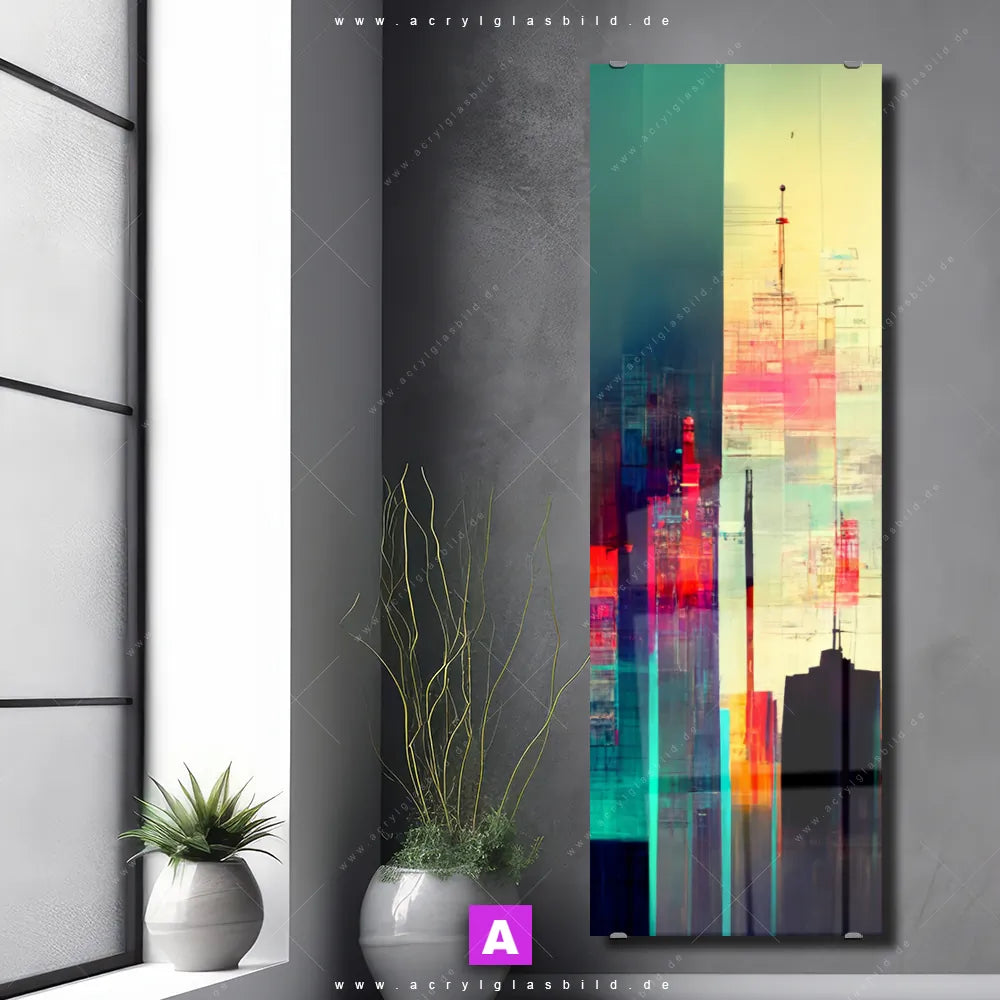 Vergiss also langweilige weiße Wände und entscheide dich für das Acrylglasbild Stadtbild in Farbstreifen, gestaltet als Kunst - Malerei, das deinem Raum Charakter verleiht und dich jeden Tag aufs Neue inspiriert. Mit diesem Städte - Skylines Acrylglasbild wird deine Wand zur Kunst und du zum Kunstliebhaber.