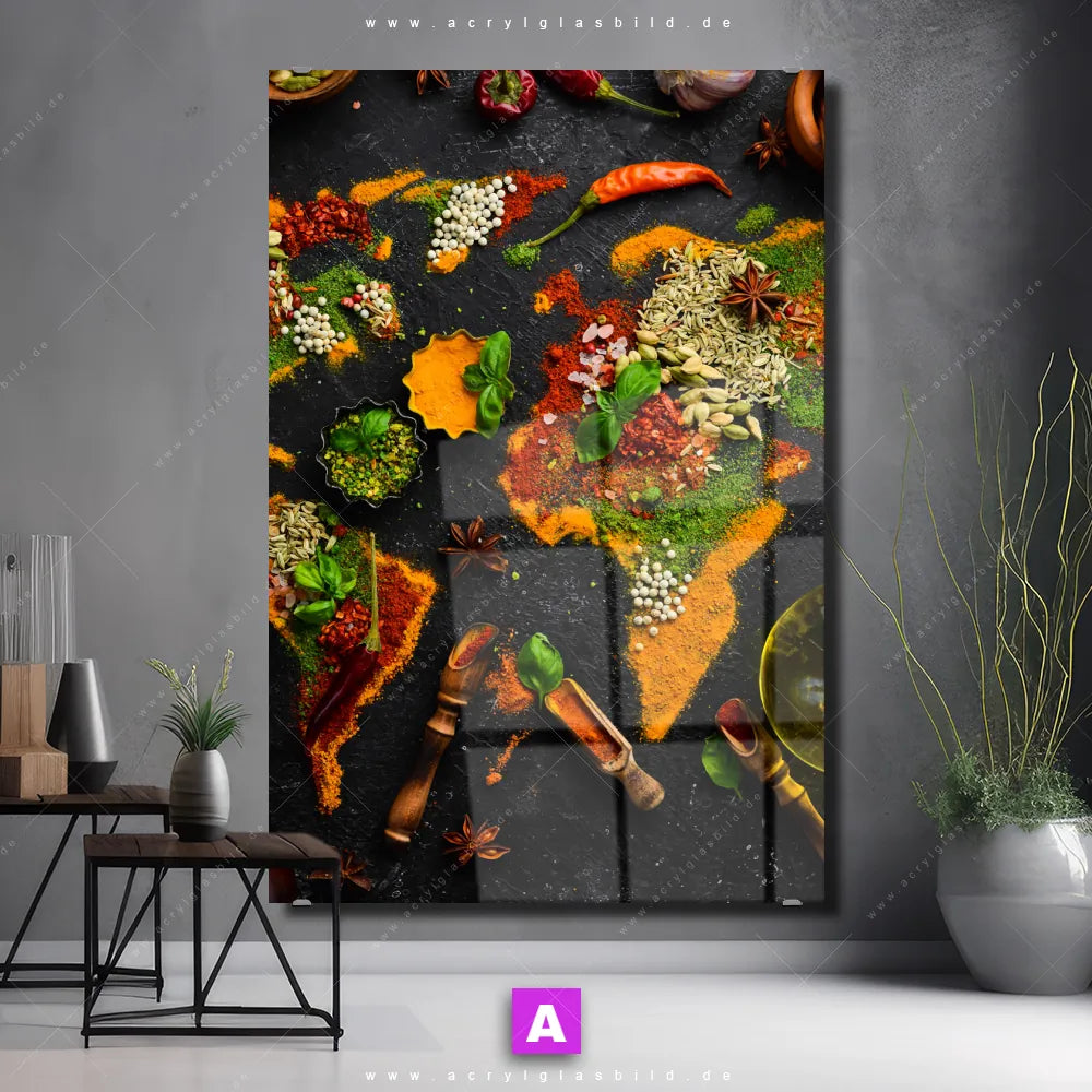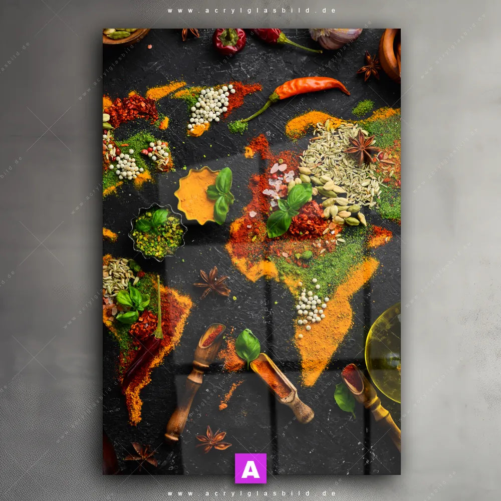 Hallo, auf Wiedersehen langweilige Wände! Gib deinem Raum ein stilvolles Upgrade mit unserem Acrylglasbild Die Weltkarte der Gewürze im Hochformat, das nicht nur Bar - Gastronomie, Küche - Esszimmer, sondern auch jeden anderen Raum im Handumdrehen auf ein neues Niveau hebt!