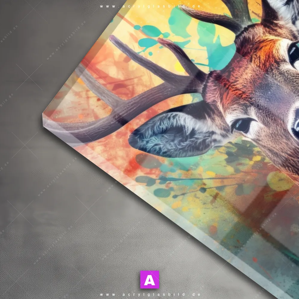Das Beste daran ist, dass unser Acrylglasbild Bunter Hirsch mit Geweih im Stil Abstrakt, Pop Art perfekt zu jedem Einrichtungsstil passt. Gestaltet als Digitale Kunst, KI-generiertes Bild, bringt es nicht nur deine Wand, sondern auch dein Herz zum Strahlen.