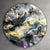 Das Motiv Fluid Art - Duftende Blüten wird im UV-Direktdruck in den Farben Schwarz, Grau , Gold, Türkis auf die Rückseite einer 5mm starken, transparenten Acrylglasplatte gedruckt. Das durchscheinende Motiv Florales abstraktes Design im Abstrakt, Floral, Modern Art Stil wird anschließend vollflächig mit einer weißen Schicht hinterlegt. Das Blumen - Botanik, Muster - Texturen Acrylglasbild | Rund erhält so eine bemerkenswerte Farbbrillanz, hohe Schärfe und erstaunliche Tiefenwirkung.