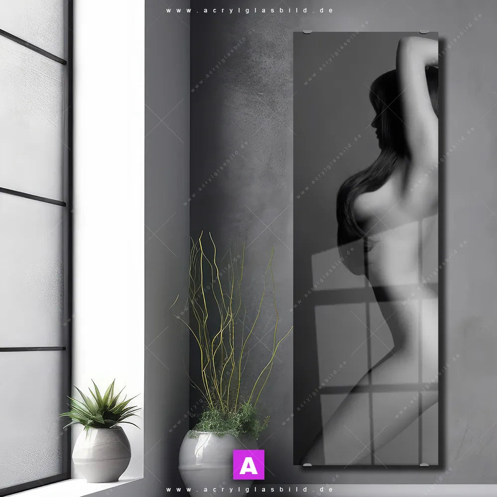 Das Motiv Frau & Gitarre wird im UV-Direktdruck in den Farben Schwarz, Weiss auf die Rückseite einer 5mm starken, transparenten Acrylglasplatte gedruckt. Das durchscheinende Motiv Seitenprofil einer nackten Frau mit Musikinstrument im Natürlich - Realistisch, Schwarz - Weiss Stil wird anschließend vollflächig mit einer weißen Schicht hinterlegt. Das Erotik - Akt, Porträts - Menschen Acrylglasbild | Schmal erhält so eine bemerkenswerte Farbbrillanz, hohe Schärfe und erstaunliche Tiefenwirkung.