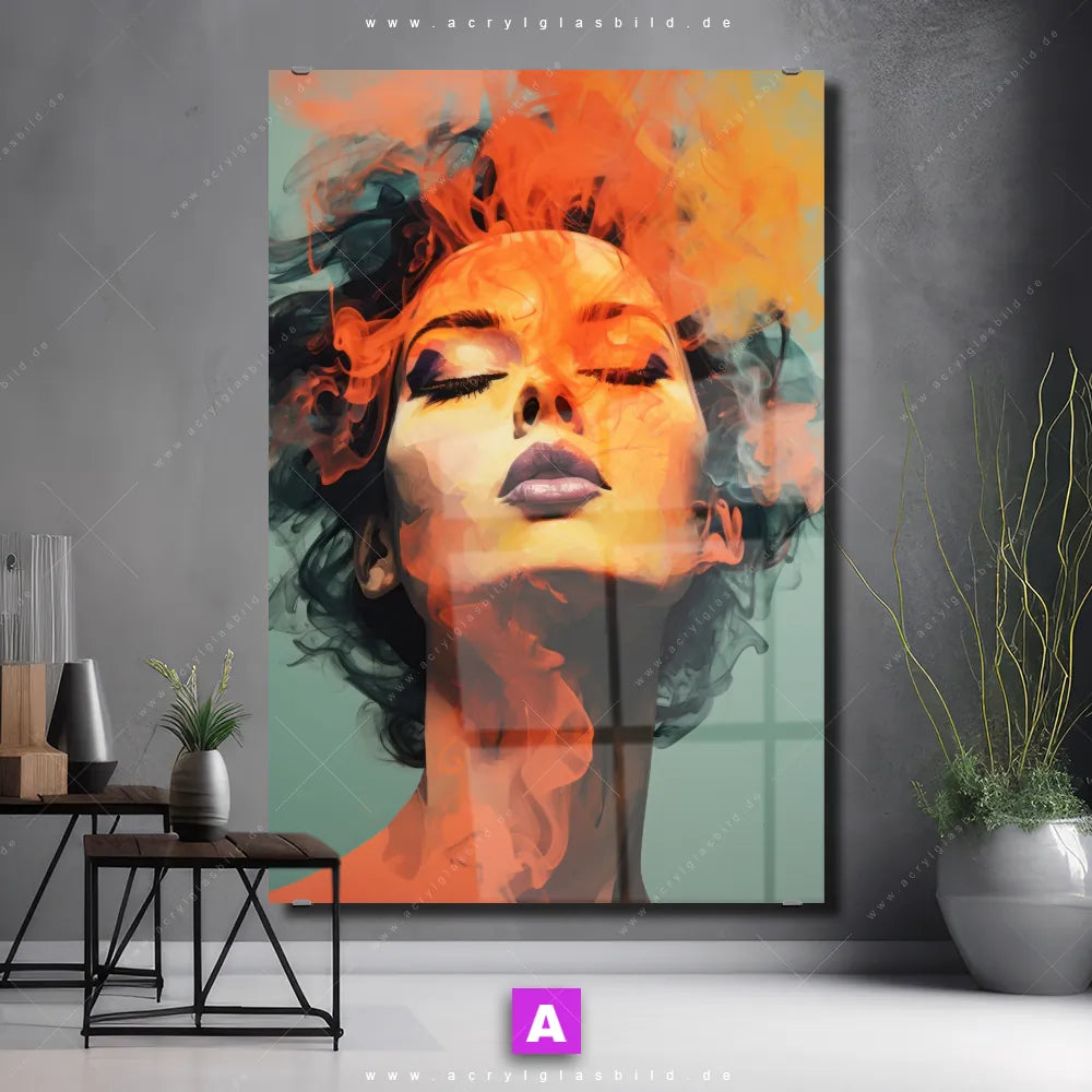 Hallo, auf Wiedersehen langweilige Wände! Gib deinem Raum ein stilvolles Upgrade mit unserem Acrylglasbild Frau mit buntem Rauch im Hochformat, das nicht nur Wohnzimmer - Schlafzimmer, Büro - Kanzlei, Bar - Gastronomie, sondern auch jeden anderen Raum im Handumdrehen auf ein neues Niveau hebt!