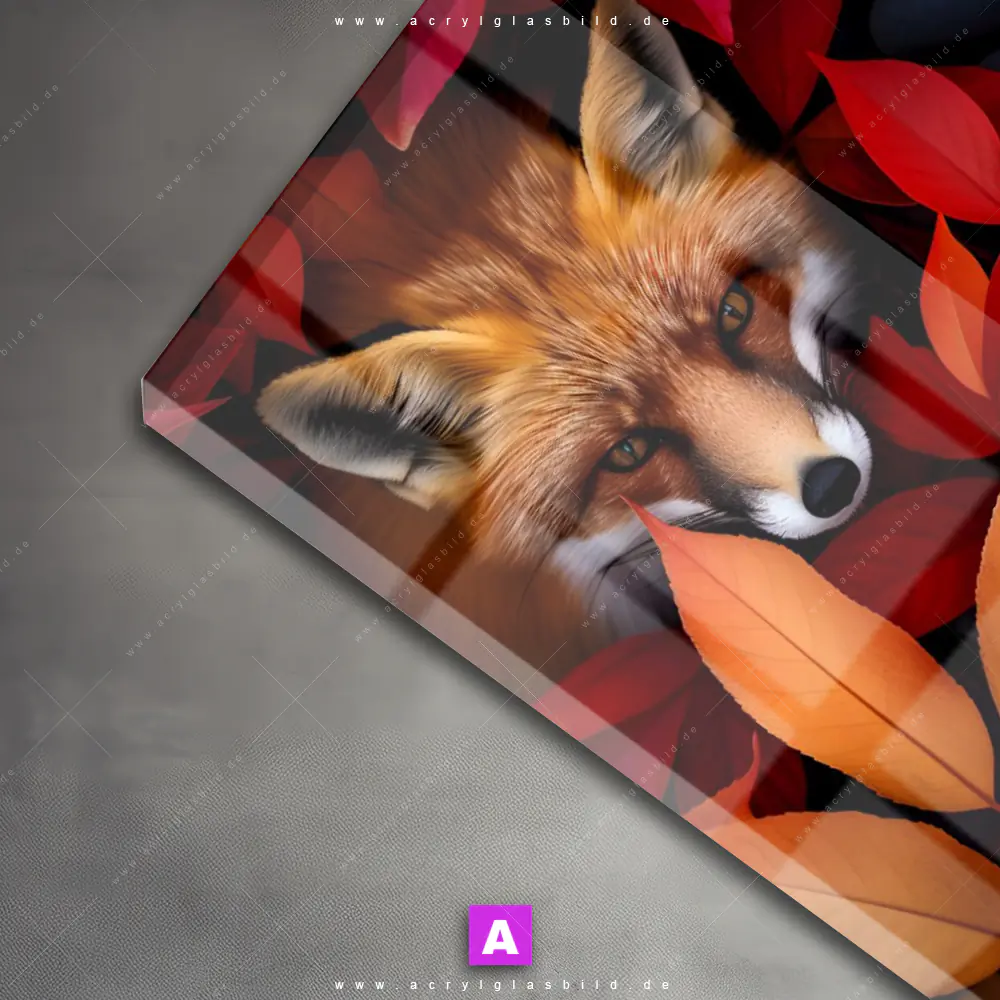 <b>Produktart:</b> Acrylglasbild | Glasbild | Wandbild aus Kunstglas | <b> Motiv:</b> Fuchs im Herbstlaub | <b> Bildausrichtung:</b> Hochformat | <b> Max. Motiv-Größe:</b> 360cm breit | 240cm hoch | <b> Verfügbare Formate: </b> Quadrat, Querformat, Hochformat, Panorama, Schmal, Rund | <b> Kategorie:</b> Tierwelt, Blumen - Botanik | <b> Farben:</b> Orange, Rot, Schwarz | <b> Kunstformen:</b> Digitale Kunst, Fotografie | <b> Kunststile:</b> Natürlich - Realistisch, Floral