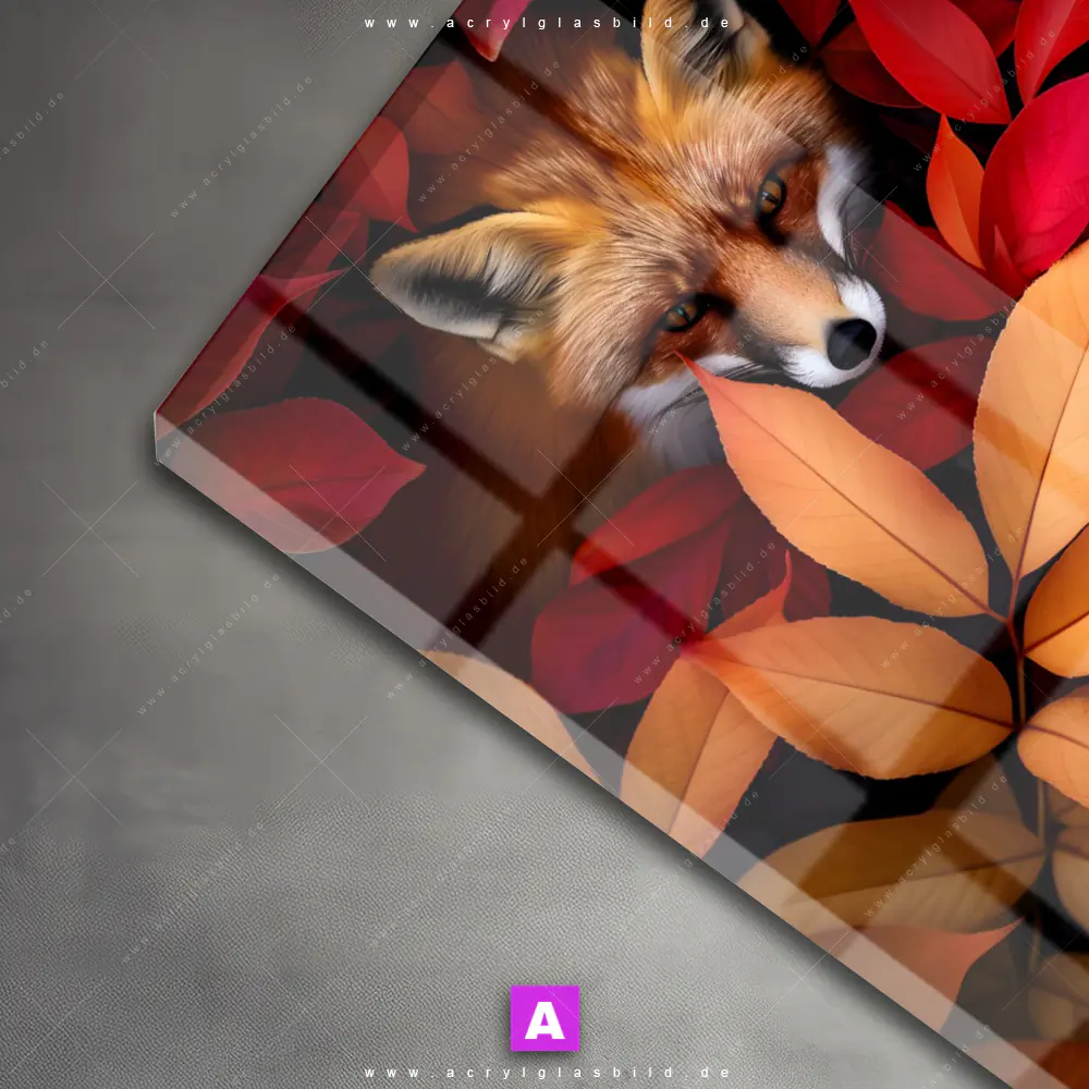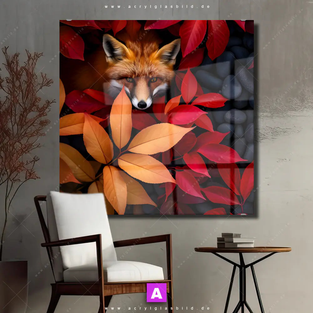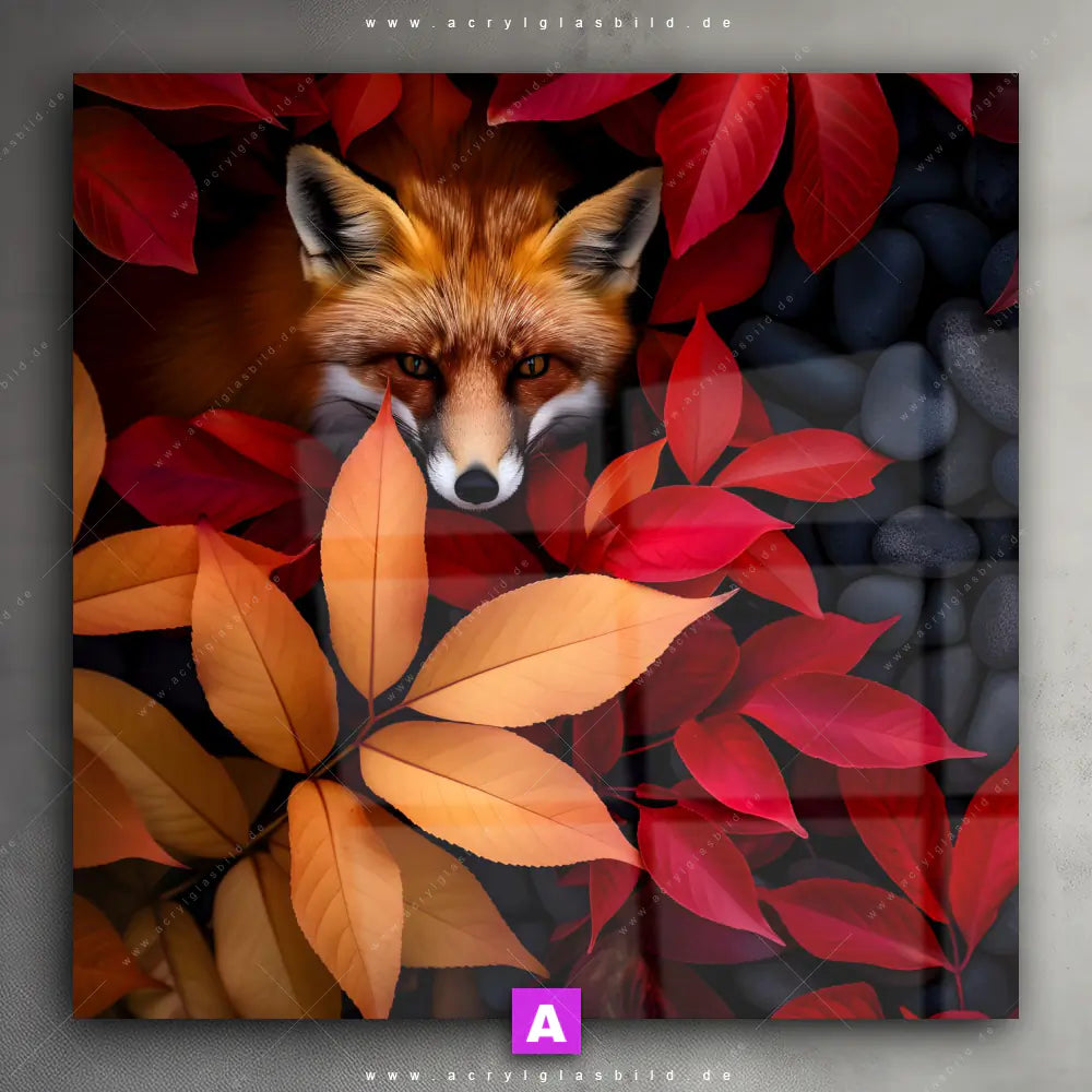 <b>Produktart:</b> Acrylglasbild | Glasbild | Wandbild aus Kunstglas | <b> Motiv:</b> Fuchs im Herbstlaub | <b> Bildausrichtung:</b> Quadrat | <b> Max. Motiv-Größe:</b> 360cm breit | 240cm hoch | <b> Verfügbare Formate: </b> Quadrat, Querformat, Hochformat, Panorama, Schmal, Rund | <b> Kategorie:</b> Tierwelt, Blumen - Botanik | <b> Farben:</b> Orange, Rot, Schwarz | <b> Kunstformen:</b> Digitale Kunst, Fotografie | <b> Kunststile:</b> Natürlich - Realistisch, Floral