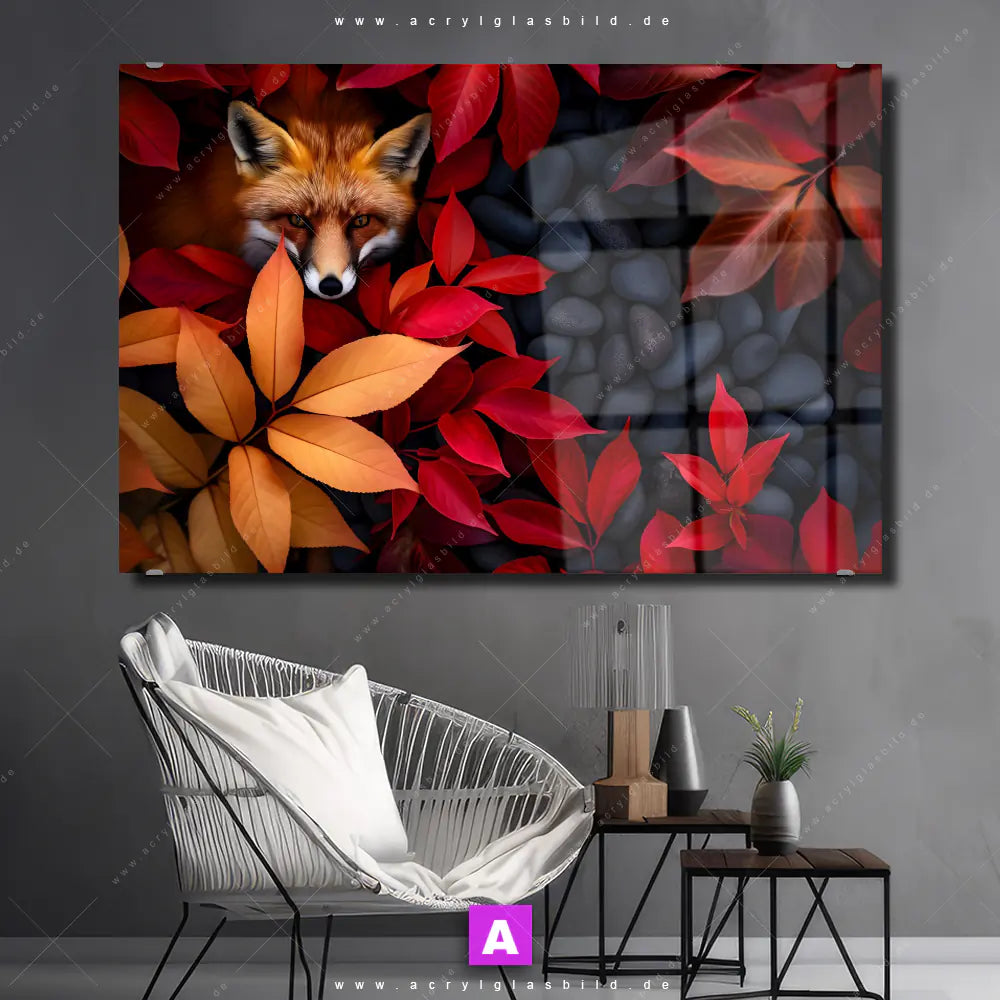 Hallo, du Meister der Dekoration oder Königin des Stils, bist du bereit, deine Räume, wie Flur - Eingangsbereich, Wohnzimmer - Schlafzimmer, Arzt - Praxis, in einen kreativen Kunstsalon zu verwandeln? Dann haben wir das perfekte Wandkunstwerk für dich: Unser Acrylglasbild Fuchs im Herbstlaub im Querformat wird im Handumdrehen jeden Raum auf ein neues Level heben!