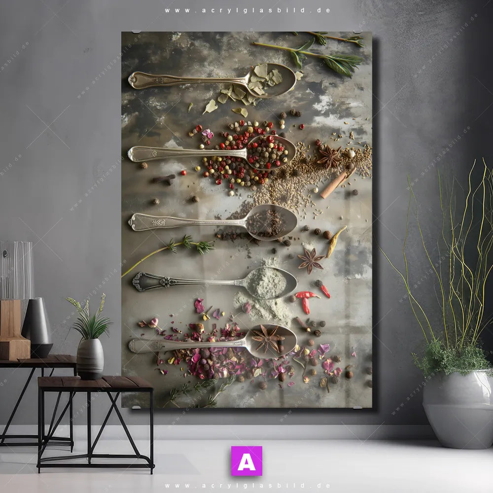 Hallo, auf Wiedersehen langweilige Wände! Gib deinem Raum ein stilvolles Upgrade mit unserem Acrylglasbild Gewürze der Welt im Hochformat, das nicht nur Küche - Esszimmer, Bar - Gastronomie, sondern auch jeden anderen Raum im Handumdrehen auf ein neues Niveau hebt!