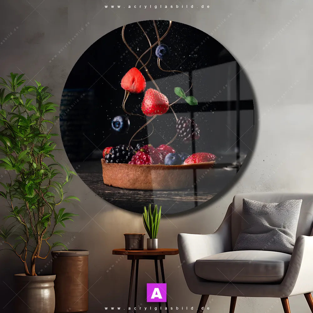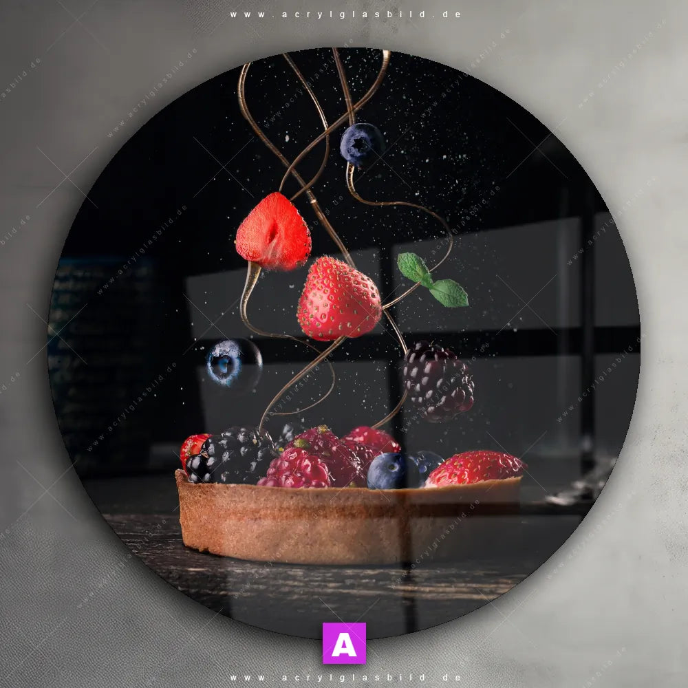 <b>Produktart:</b> Acrylglasbild | Glasbild | Wandbild aus Kunstglas | <b> Motiv:</b> Kuchen mit frischen Beeren | <b> Bildausrichtung:</b> Rund | <b> Max. Motiv-Größe:</b> 230cm breit | 230cm hoch | <b> Verfügbare Formate: </b> Quadrat, Querformat, Hochformat, Panorama, Schmal, Rund | <b> Kategorie:</b> Essen - Trinken | <b> Farben:</b> Bunt, Schwarz, Lila, Rot | <b> Kunstformen:</b> Fotografie, Digitale Kunst | <b> Kunststile:</b> Mixed Media, Modern Art