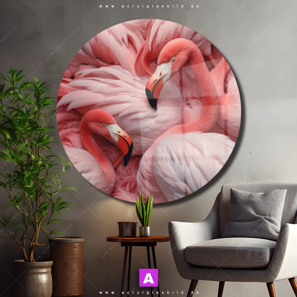 Hey du! Bist du es auch leid, auf langweilige, weiße Wände in deinem Raum zu starren und dich zu fragen, ob das der Sinn des Lebens ist? Unser Acrylglasbild mit dem Titel Kuschelnde Flamingos im Format Rund verwandelt deine Wand in ein Kunstwerk und macht deinen Raum zum absoluten Hingucker.