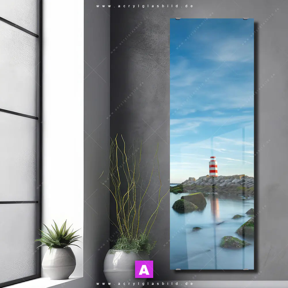 Acrylglasbild | Leuchtturm an der Nordsee | Schmal