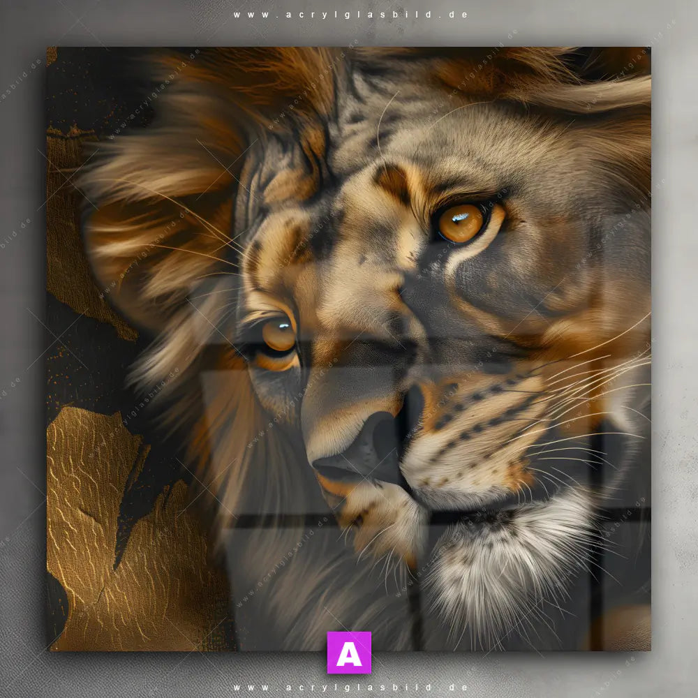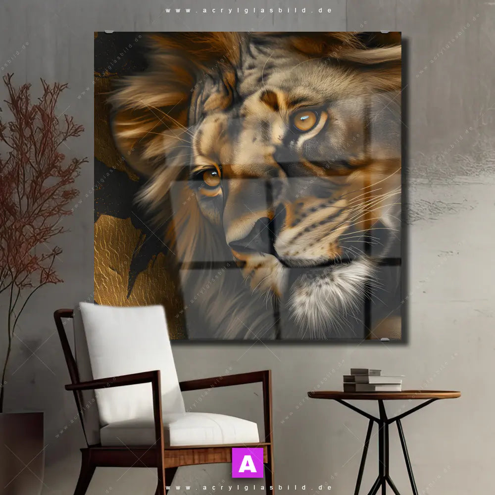 <b>Produktart:</b> Acrylglasbild | Glasbild | Wandbild aus Kunstglas | <b> Motiv:</b> Löwenportrait: Kraft und Eleganz | <b> Bildausrichtung:</b> Quadrat | <b> Max. Motiv-Größe:</b> 315cm breit | 210cm hoch | <b> Verfügbare Formate: </b> Quadrat, Querformat, Hochformat, Panorama, Schmal, Rund | <b> Kategorie:</b> Tierwelt | <b> Farben:</b> Braun, Beige, Gold | <b> Kunstformen:</b> Digitale Kunst | <b> Kunststile:</b> Modern Art