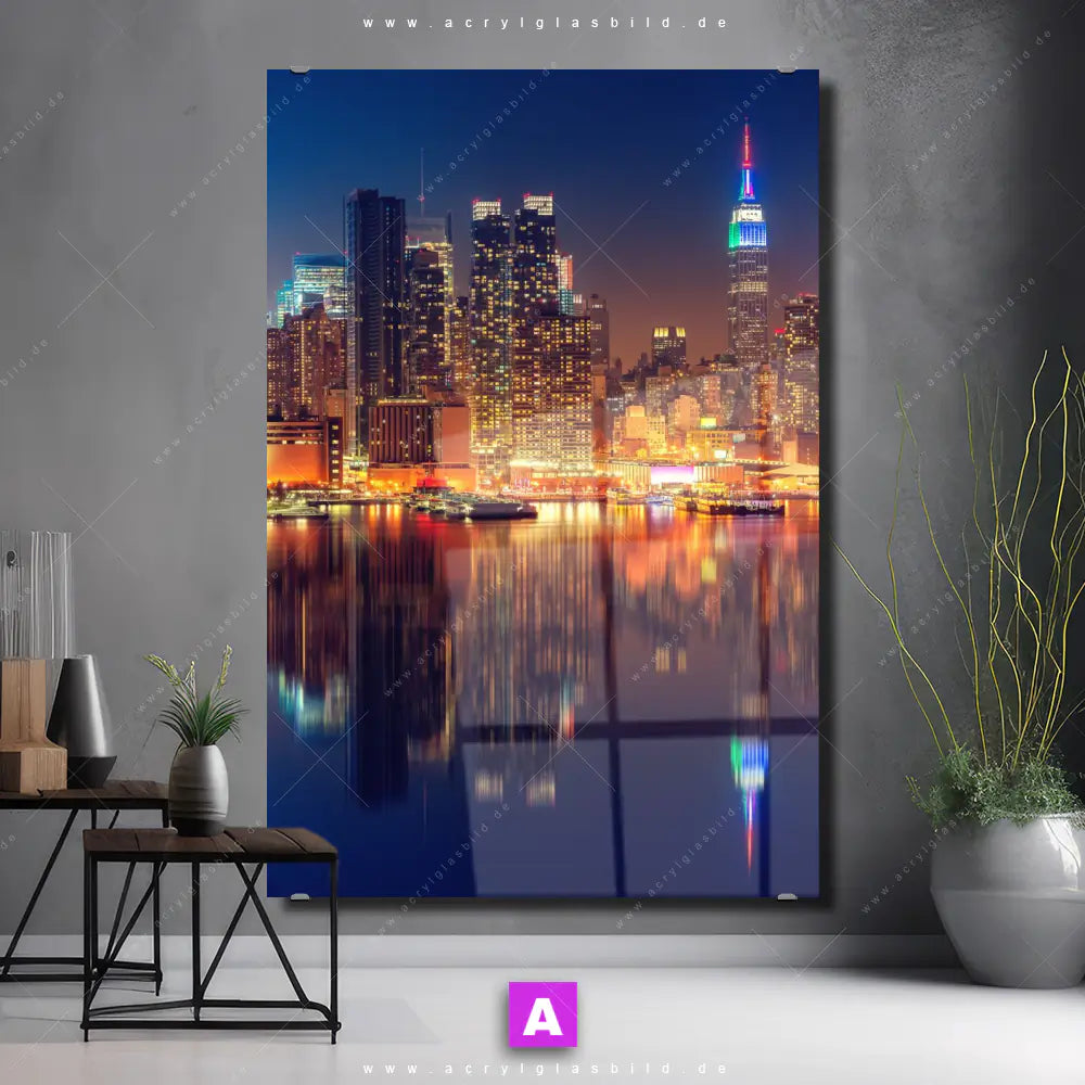 Hallo, auf Wiedersehen langweilige Wände! Gib deinem Raum ein stilvolles Upgrade mit unserem Acrylglasbild Manhattan bei Nacht im Hochformat, das nicht nur Wohnzimmer - Schlafzimmer, Büro - Kanzlei, Flur - Eingangsbereich, Bar - Gastronomie, sondern auch jeden anderen Raum im Handumdrehen auf ein neues Niveau hebt!