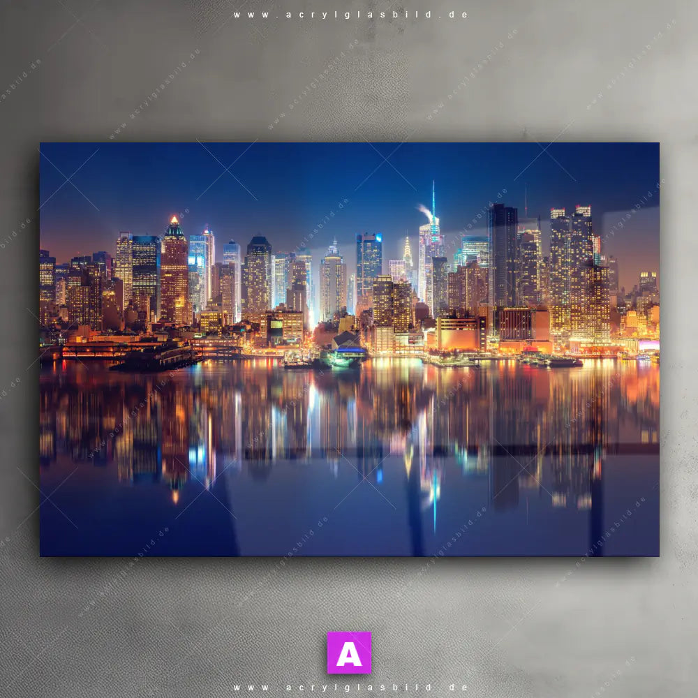 <b>Produktart:</b> Acrylglasbild | Glasbild | Wandbild aus Kunstglas | <b> Motiv:</b> Manhattan bei Nacht | <b> Bildausrichtung:</b> Querformat | <b> Max. Motiv-Größe:</b> 711cm breit | 400cm hoch | <b> Verfügbare Formate: </b> Quadrat, Querformat, Hochformat, Panorama, Schmal, Rund | <b> Kategorie:</b> Städte - Skylines | <b> Farben:</b> Blau, Braun, Orange | <b> Kunstformen:</b> Fotografie | <b> Kunststile:</b> Modern Art, Natürlich - Realistisch