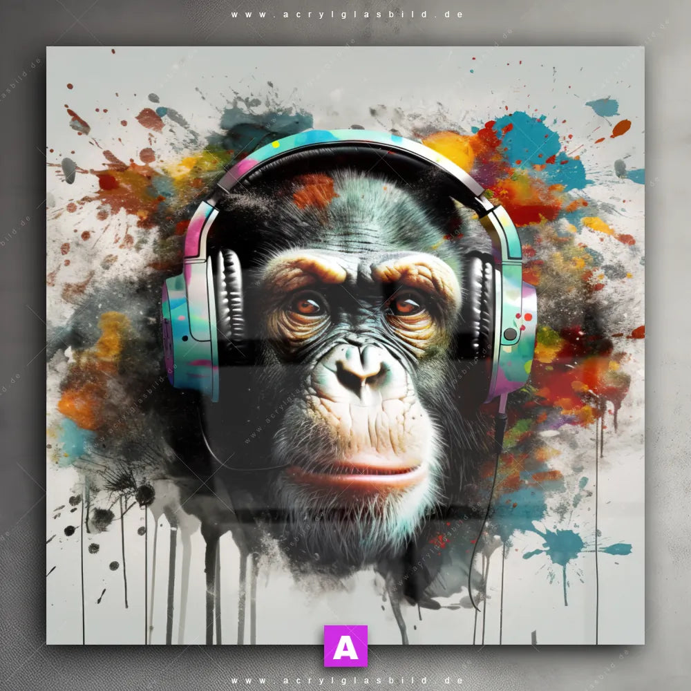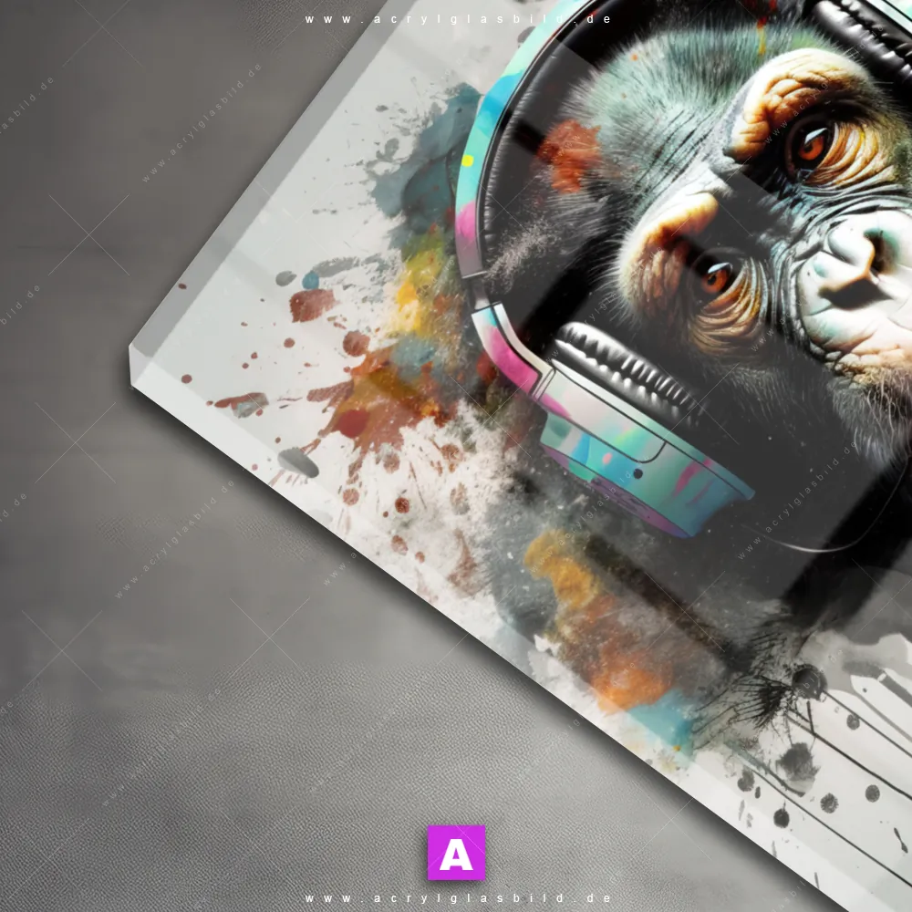 Also, worauf wartest du noch? Verleihe deinen Wänden das gewisse Etwas und bestelle jetzt das Acrylglasbild Schimpanse mit Kopfhörern!