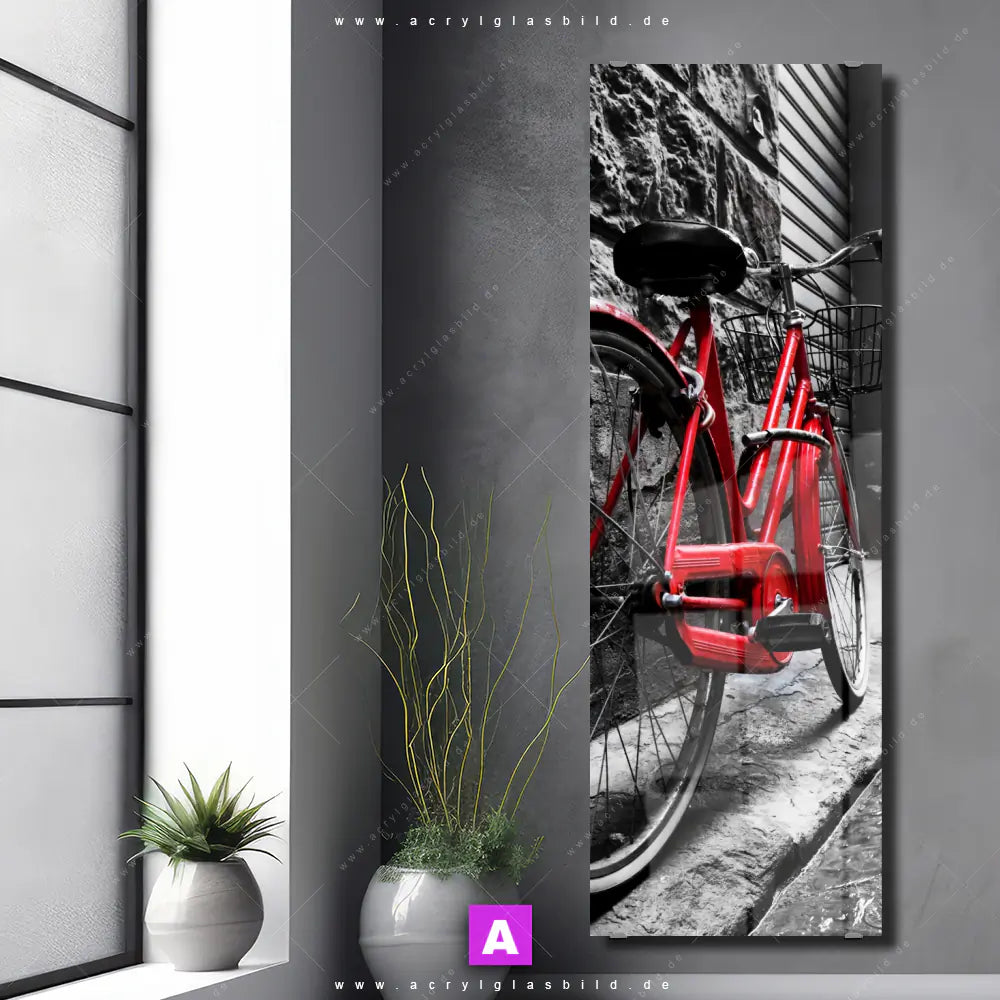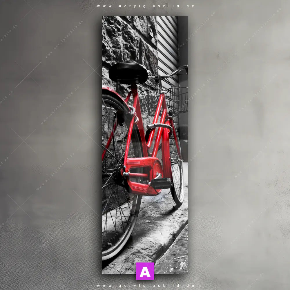 Acrylglasbild | Rotes Fahrrad in Gasse | Schmal