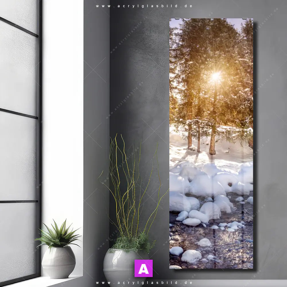 Vergiss also langweilige weiße Wände und entscheide dich für das Acrylglasbild Schnee und Fluss im Winter, gestaltet als Fotografie, das deinem Raum Charakter verleiht und dich jeden Tag aufs Neue inspiriert. Mit diesem Landschaften, Winter Acrylglasbild wird deine Wand zur Kunst und du zum Kunstliebhaber.