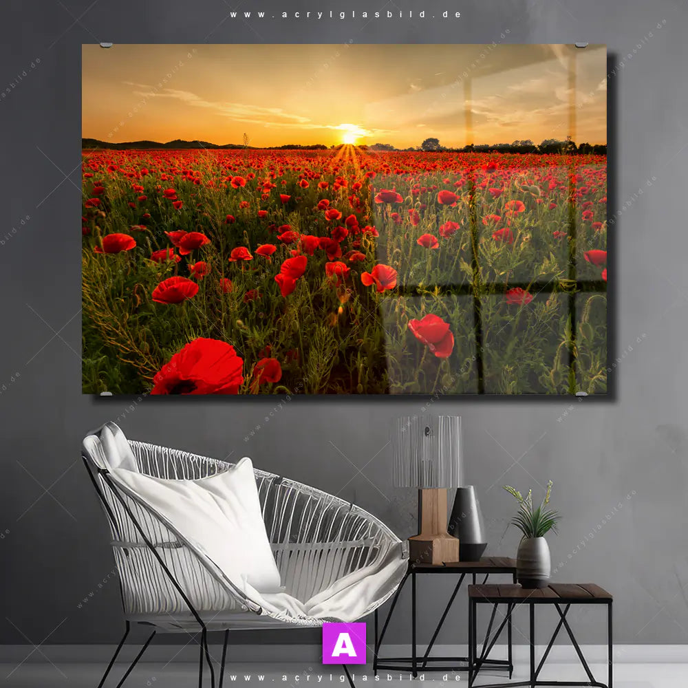 Hallo, du Meister der Dekoration oder Königin des Stils, bist du bereit, deine Räume, wie Arzt - Praxis, Büro - Kanzlei, Wohnzimmer - Schlafzimmer, Flur - Eingangsbereich, in einen kreativen Kunstsalon zu verwandeln? Dann haben wir das perfekte Wandkunstwerk für dich: Unser Acrylglasbild Sommerlandschaft mit rotem Mohn im Querformat wird im Handumdrehen jeden Raum auf ein neues Level heben!