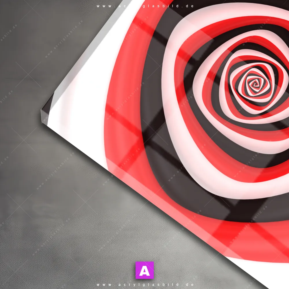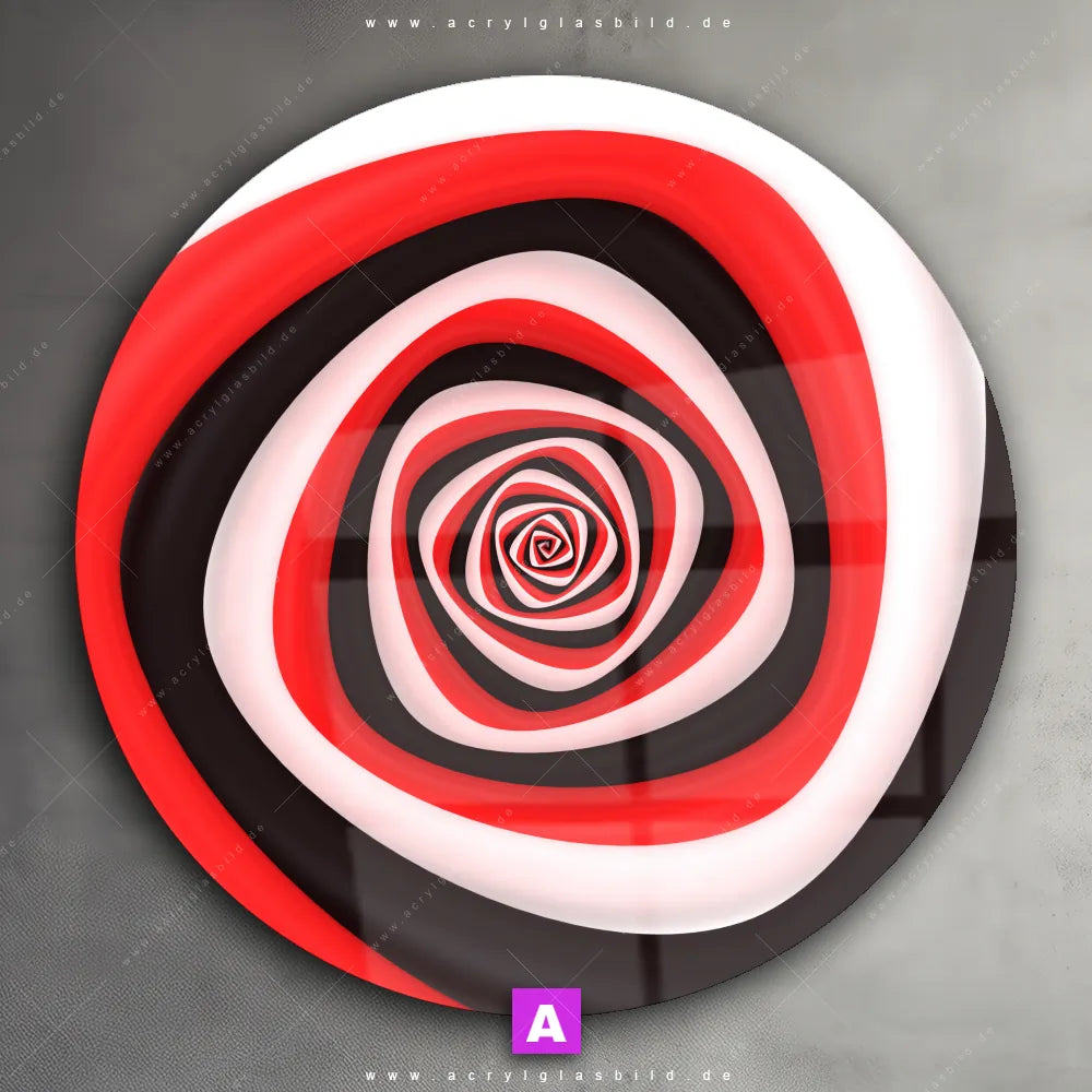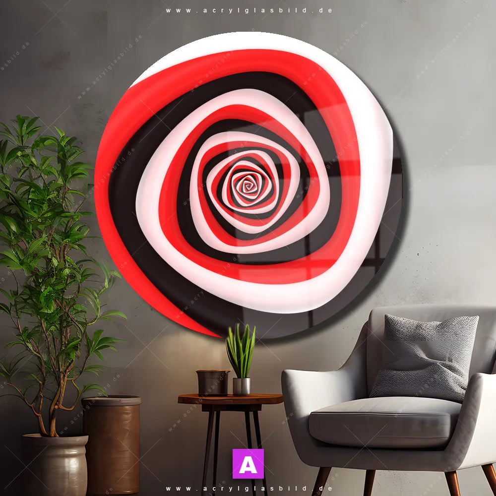 Hey du! Bist du es auch leid, auf langweilige, weiße Wände in deinem Raum zu starren und dich zu fragen, ob das der Sinn des Lebens ist? Unser Acrylglasbild mit dem Titel Spirale in rot weiß schwarz im Format Rund verwandelt deine Wand in ein Kunstwerk und macht deinen Raum zum absoluten Hingucker.