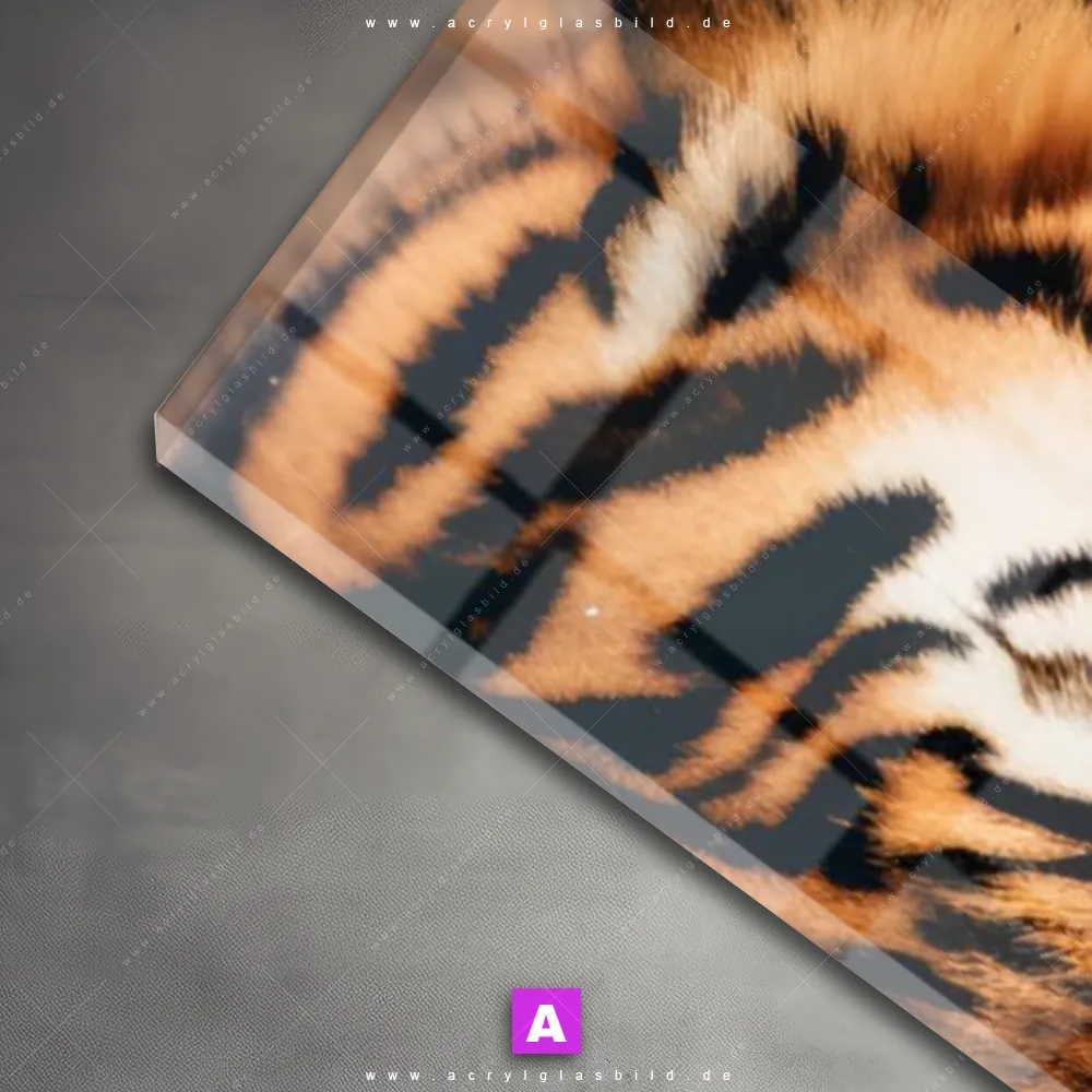 Das Motiv Tiger im Wasser wird im UV-Direktdruck in den Farben Braun, Beige, Schwarz auf die Rückseite einer 5mm starken, transparenten Acrylglasplatte gedruckt. Das durchscheinende Motiv Tiger im kühlen Nass im Modern Art Stil wird anschließend vollflächig mit einer weißen Schicht hinterlegt. Das Tierwelt Acrylglasbild | Schmal erhält so eine bemerkenswerte Farbbrillanz, hohe Schärfe und erstaunliche Tiefenwirkung.