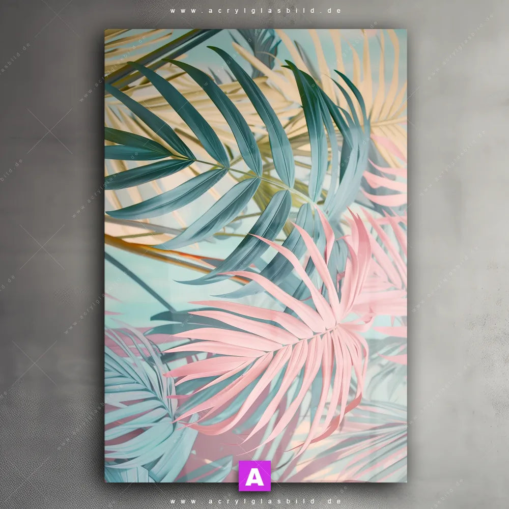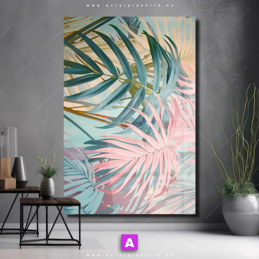 Acrylglasbild | Tropische Blätter in Pastellfarben | Hochformat