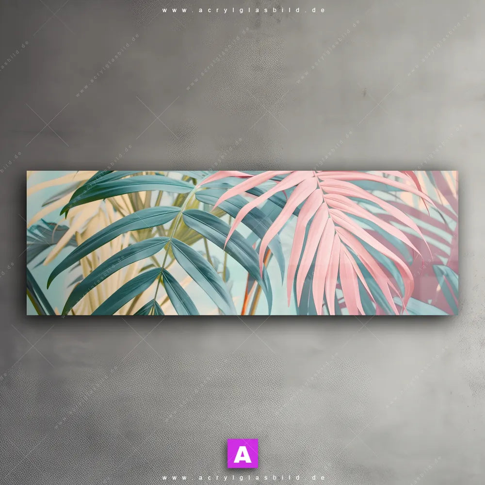 Fehlt dir die Inspiration beim Anblick deiner Wände, sodass selbst das Zählen der Wandfarbtropfen aufregender erscheint? Keine Sorge, wir haben das perfekte Kunstwerk für dich! Mit unserem Acrylglasbild Tropische Blätter in Pastellfarben im Panorama-Format verleihst du deinem Raum den dringend benötigten Wow-Faktor. Lass deine Wände mit unserem Exotische Palmen-Blätter Acrylglasbild zum Star werden!