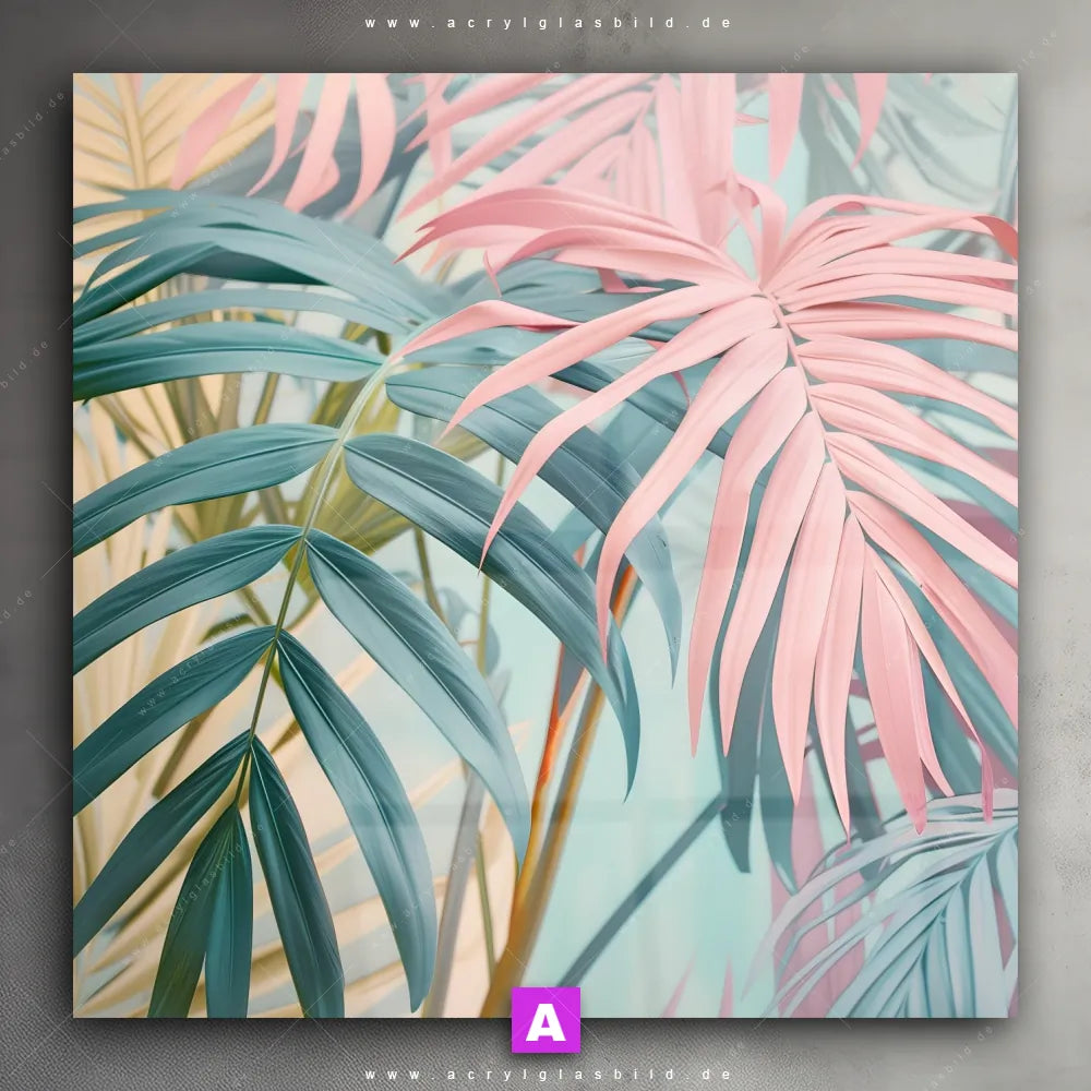 <b>Produktart:</b> Acrylglasbild | Glasbild | Wandbild aus Kunstglas | <b> Motiv:</b> Tropische Blätter in Pastellfarben | <b> Bildausrichtung:</b> Quadrat | <b> Max. Motiv-Größe:</b> 450cm breit | 300cm hoch | <b> Verfügbare Formate: </b> Quadrat, Querformat, Hochformat, Panorama, Schmal, Rund | <b> Kategorie:</b> Blumen - Botanik, Muster - Texturen | <b> Farben:</b> Grün, Mint, Rosa | <b> Kunstformen:</b> Digitale Kunst | <b> Kunststile:</b> Floral, Modern Art