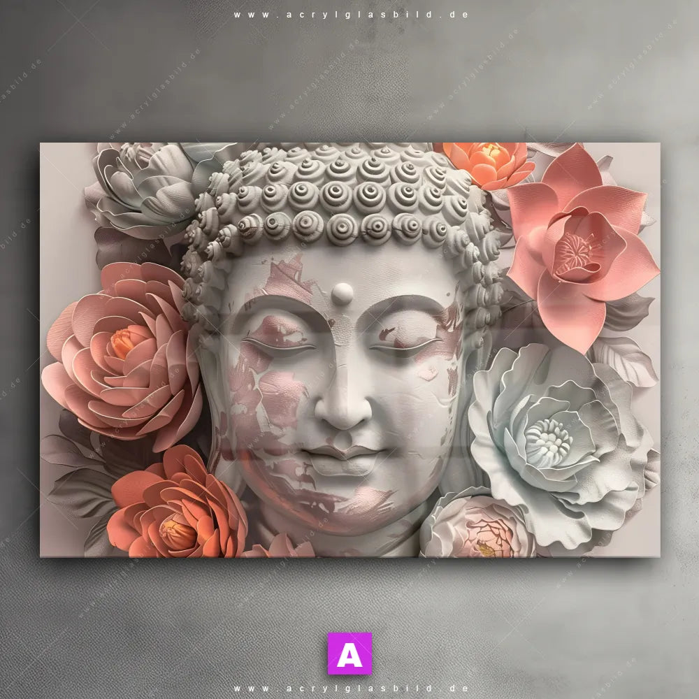 <b>Produktart:</b> Acrylglasbild | Glasbild | Wandbild aus Kunstglas | <b> Motiv:</b> Pastellblüten und Buddha | <b> Bildausrichtung:</b> Querformat | <b> Max. Motiv-Größe:</b> 300cm breit | 300cm hoch | <b> Verfügbare Formate: </b> Quadrat, Querformat, Hochformat, Panorama, Schmal, Rund | <b> Kategorie:</b> Buddha - Feng Shui, Blumen - Botanik | <b> Farben:</b> Beige, Orange, Grau | <b> Kunstformen:</b> Digitale Kunst | <b> Kunststile:</b> Modern Art, Floral