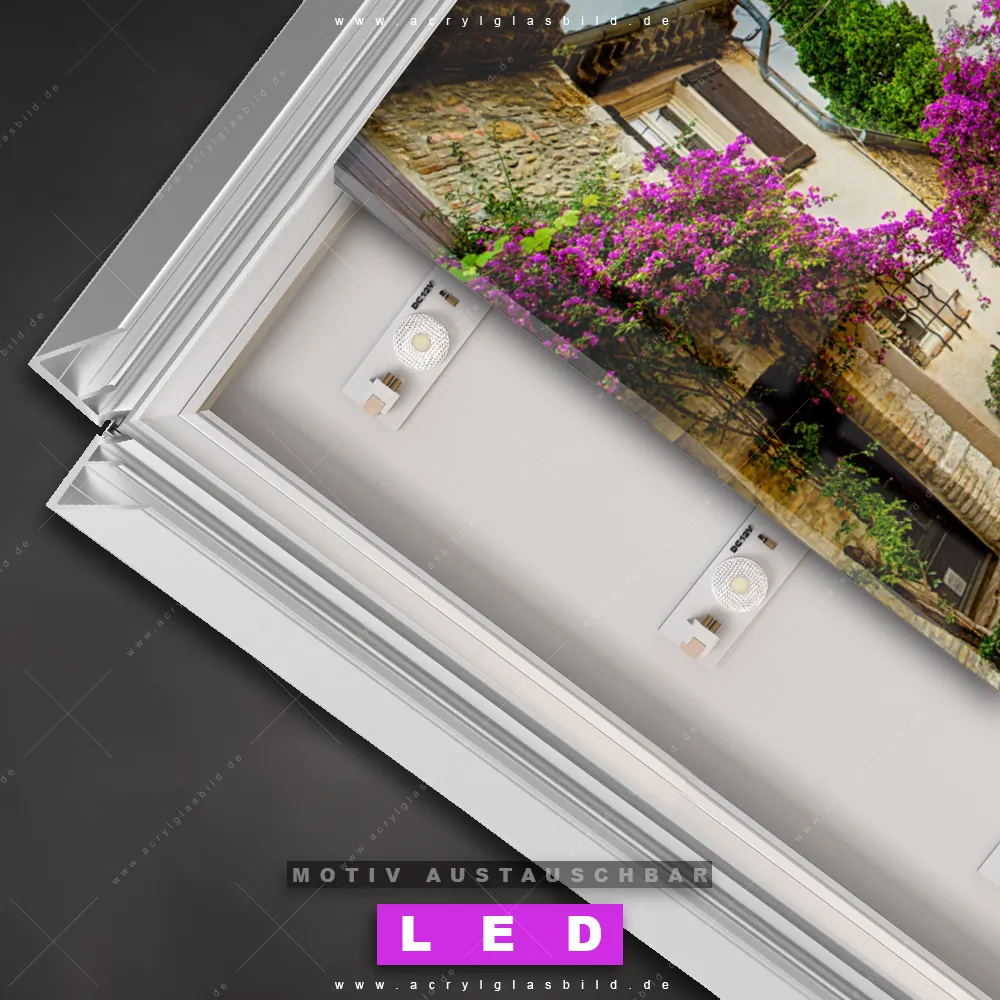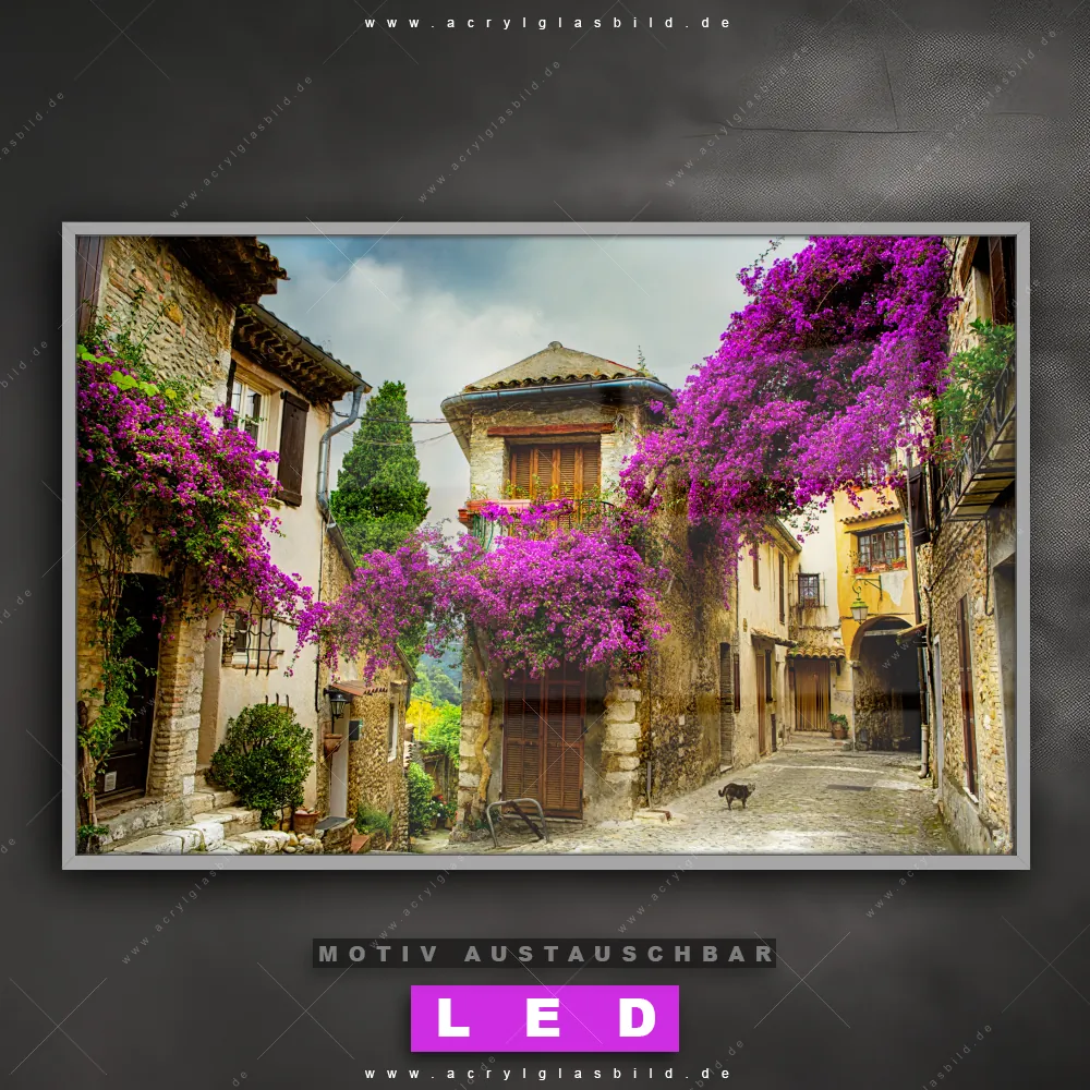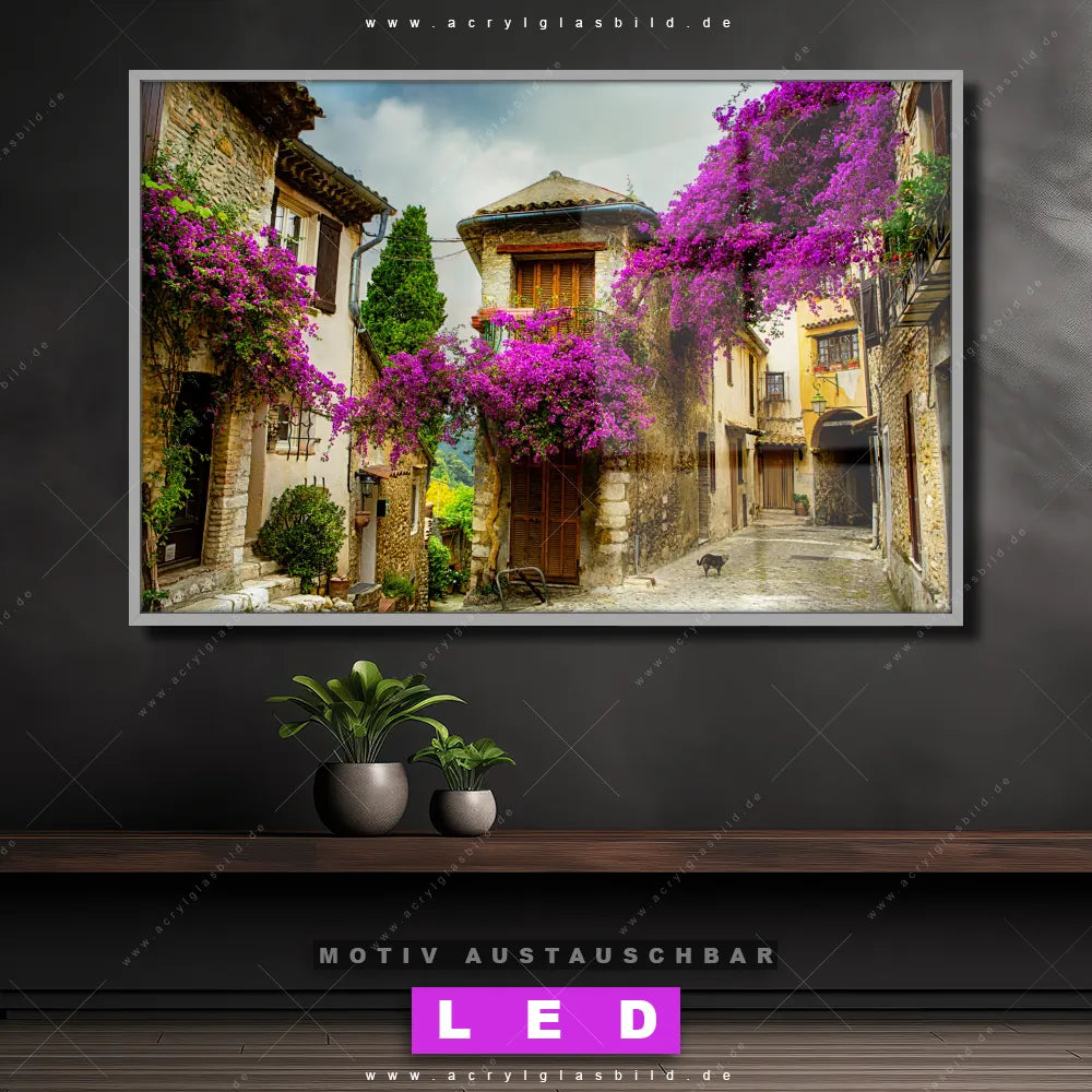 Du bist auf der Suche nach einem dimmbaren Architektur - Gebäude LED Bild mit Fernbedienung und optionaler Farbtemperatursteuerung? Dann haben wir hier genau das richtige Wandbild mit LED Beleuchtung für dich: Unser Canvalight® DIA LED Acrylglasbild Altstadt der Provence im Querformat mit austauschbarer bedruckter Acrylglas-Scheibe. Dieses Leuchtbild bringt sofort Partybeleuchtung in deine Räume!
