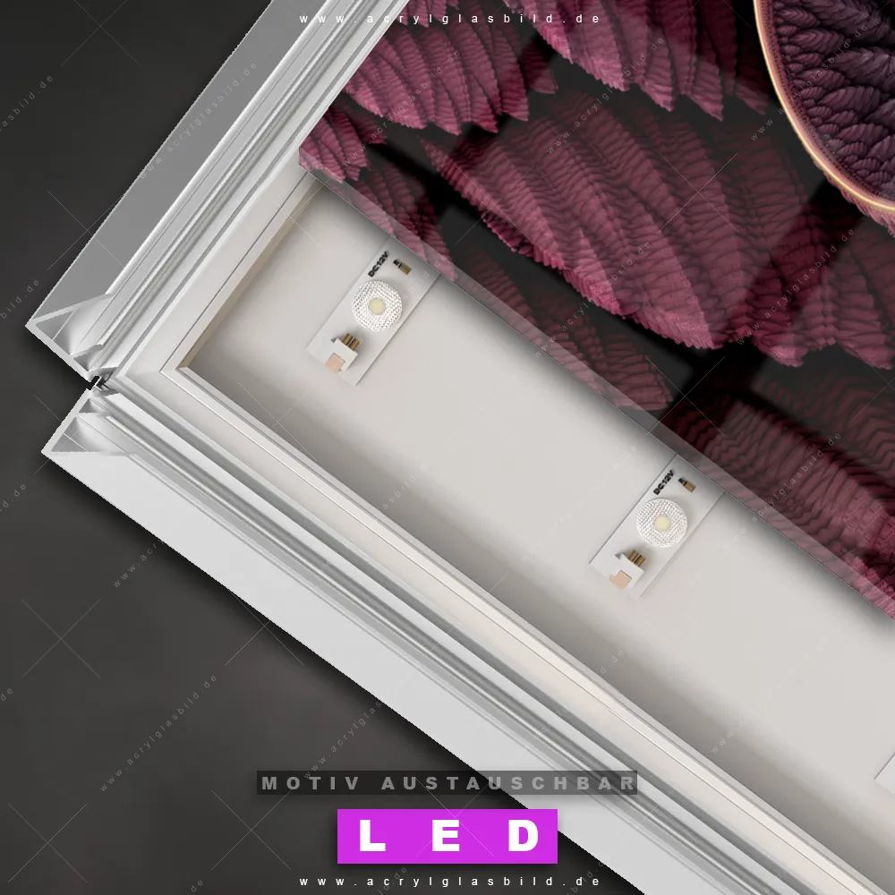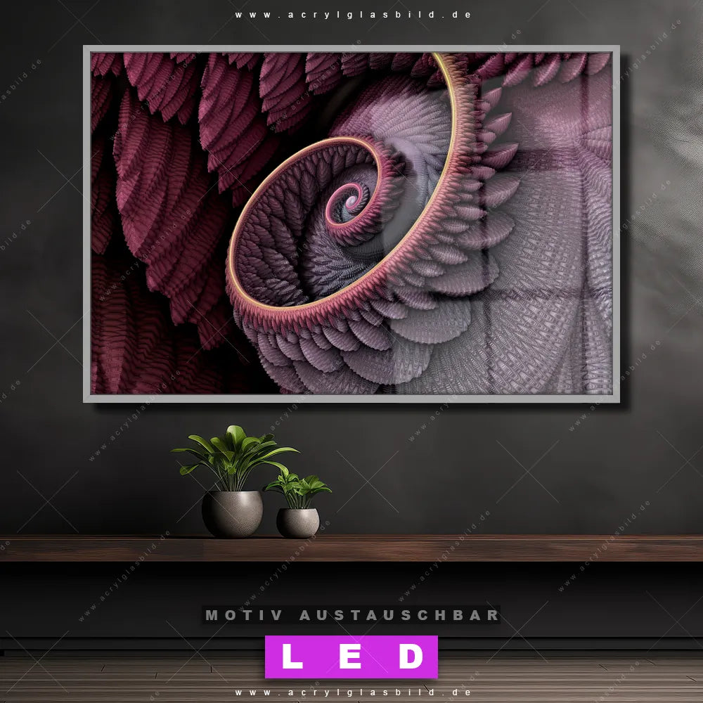 Mit unserem LED Acrylglasbild Canvalight® DIA Abstrakte Spirale mit Blütenblättern und seiner genialen LED-Ausleuchtung wirst du nie wieder im Dunkeln auf deinem Sofa herumtappen. Wenn du nach einem beleuchteten Wandbild aus Acrylglas mit Blume, Blüte, Kunst, kreativ, Spirale, Wirbel, Nahaufnahme, Detail für Wohnzimmer - Schlafzimmer, Bar - Gastronomie suchst, ist unser LED Leuchtbild Spirale in Blütenblätteroptik in den beeindruckenden Motiv-Farben Schwarz, Rot, Lila genau das richtige beleuchtete Wandbild für dich. Gestaltet im Abstrakt, Modern Art, Floral Stil, passt dieses LED Wandbild mit DIA-Klapprahmen und glänzender Front aus Acrylglas perfekt zu jedem Einrichtungsstil – sogar zu deinem chaotischen kreativen Durcheinander!