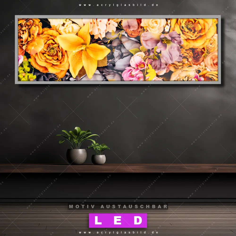 Deine Wände könnten dringend ein dimmbares LED Bild mit Fernbedienung und optionaler Farbtemperatursteuerung gebrauchen? Dann haben wir das perfekte Wandbild mit LED Beleuchtung für dich: unser mega-cooles Blumen - Botanik Canvalight® DIA LED Acrylglasbild! Mit unserem angesagten Leuchtbild aus Acrylglas im Panorama-Format und der austauschbaren bedruckten Acrylglas-Scheibe Blütenzauber bringst du nicht nur Licht, sondern auch jede Menge Flair in deine Räume.