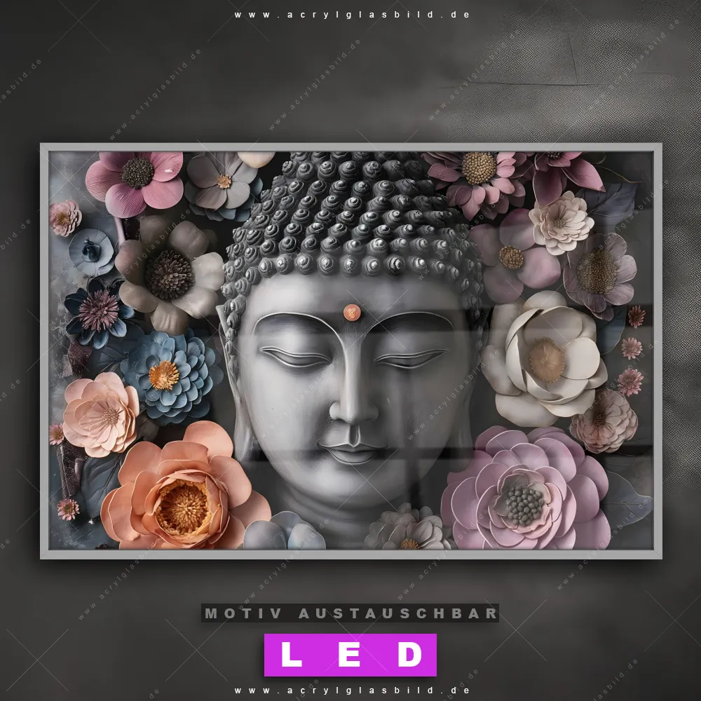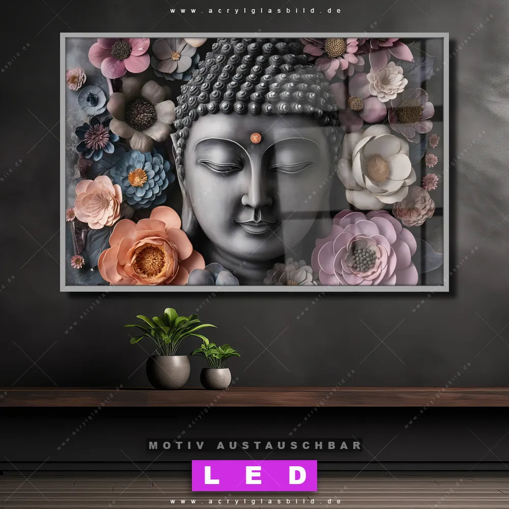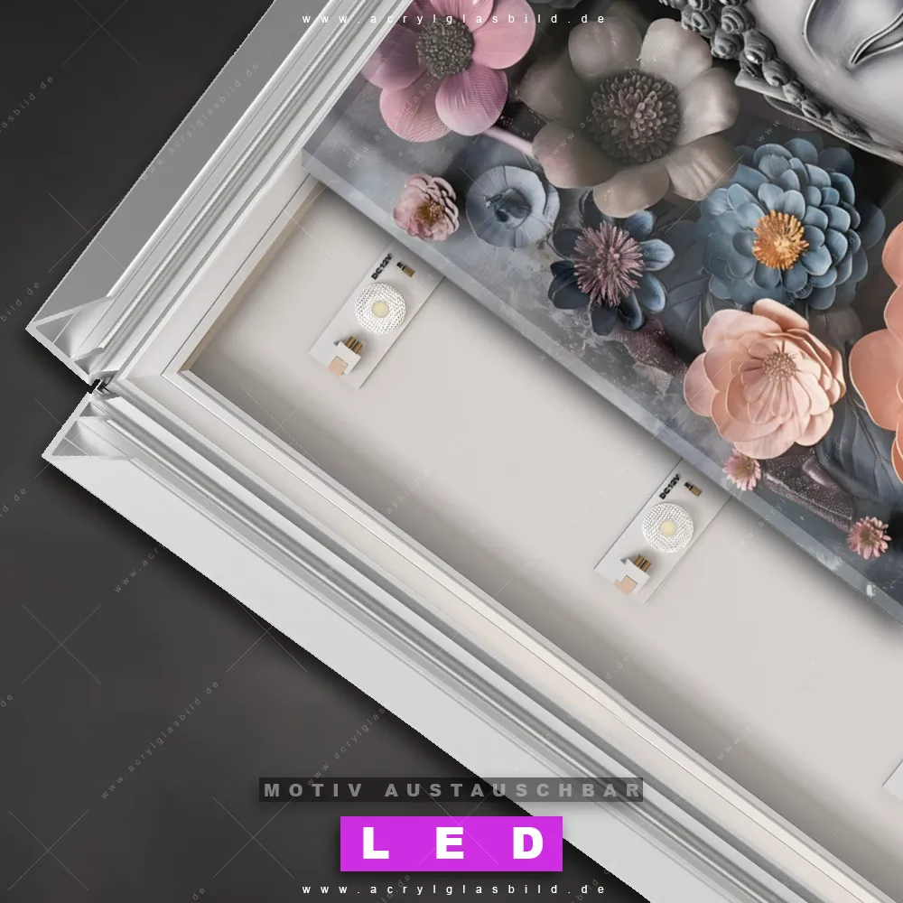 LED Acrylglasbild Canvalight® DIA | Buddha-Kunst mit Pastellblüten | Querformat