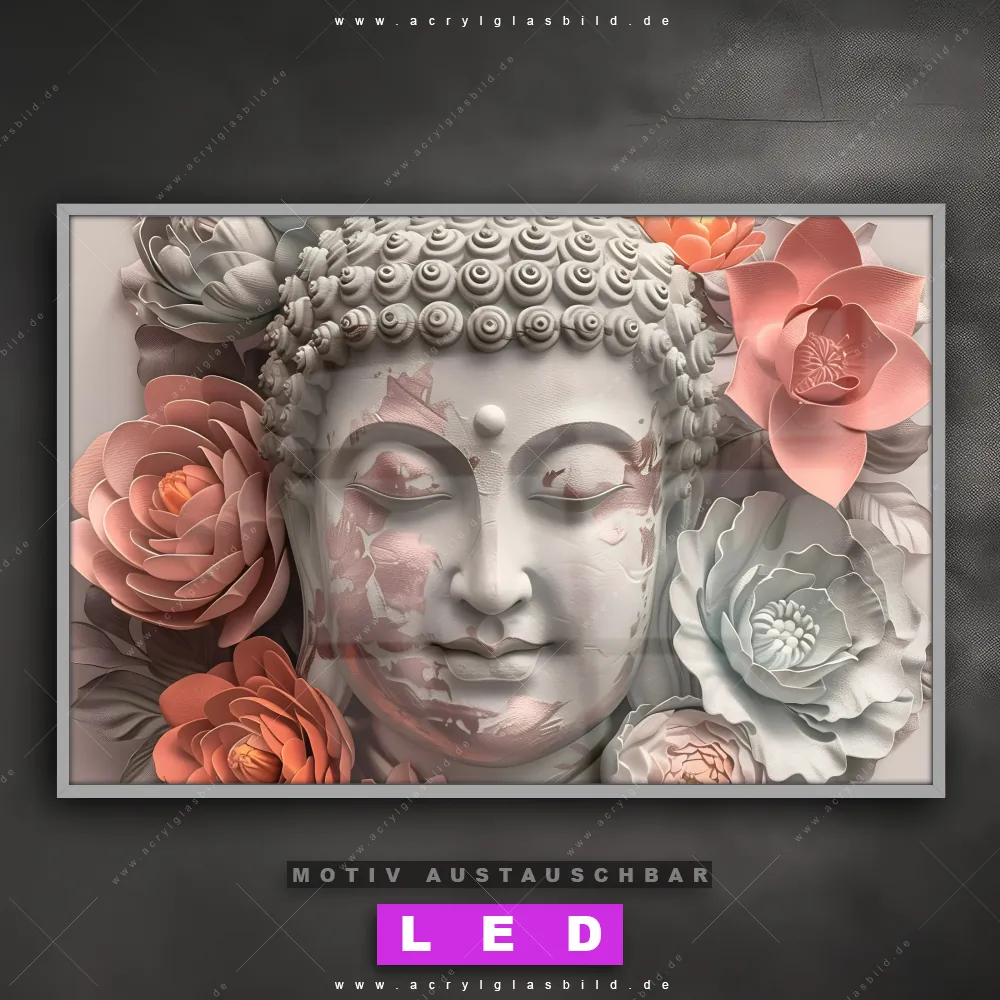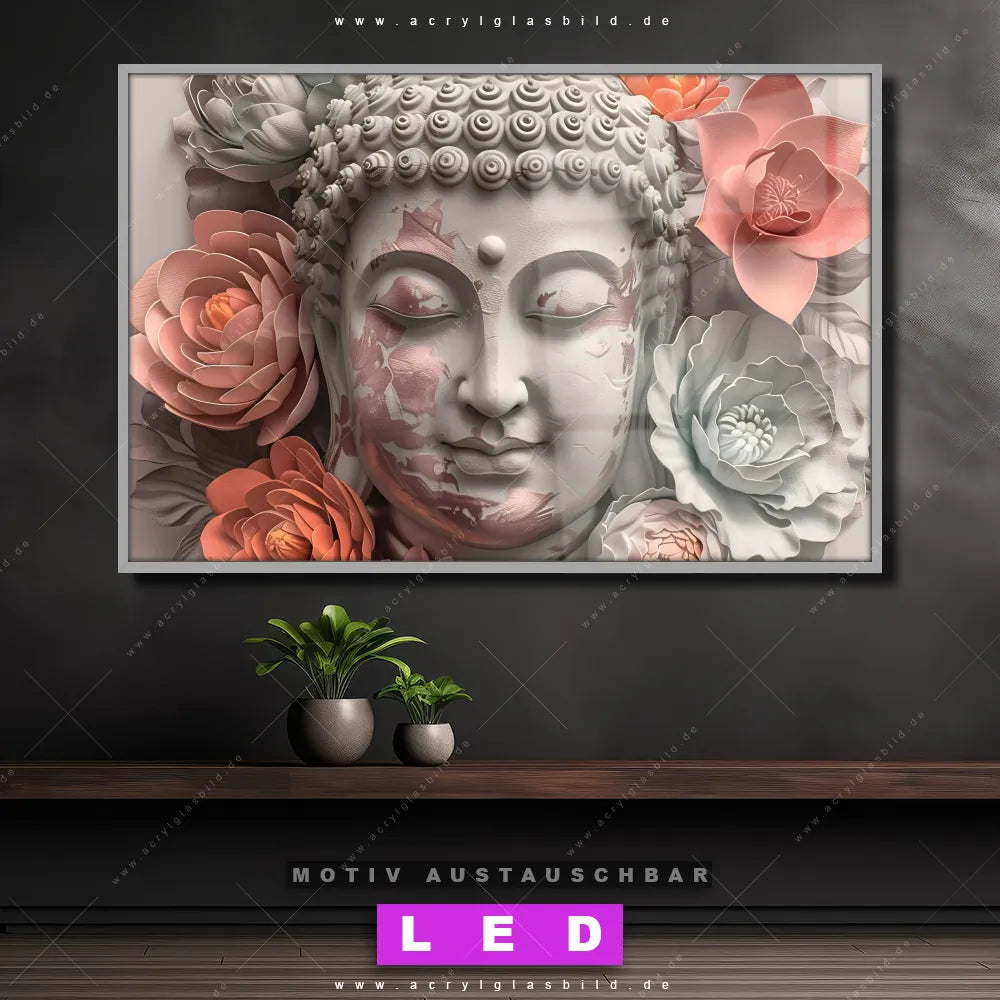 LED Acrylglasbild Canvalight® DIA | Pastellblüten und Buddha | Querformat