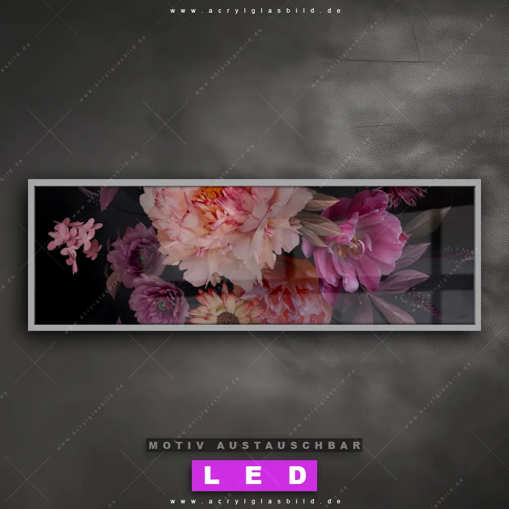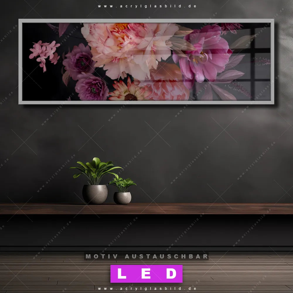LED Acrylglasbild Canvalight® DIA | Romantische Blumenillustration | Panorama