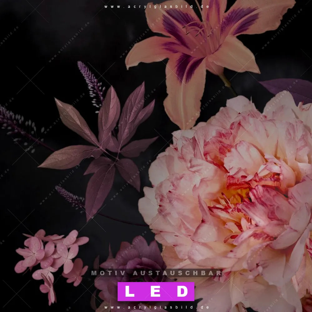 Wer will schon dunkle, triste Wände? Mit unserem LED Acrylglasbild Canvalight® DIA Blütenzauber mit Pfingstrosen und seiner fantastischen LED-Ausleuchtung werden deine Wände in Arzt - Praxis, Büro - Kanzlei, Wohnzimmer - Schlafzimmer, Flur - Eingangsbereich zu echten Hinguckern. Wenn du auf der Suche nach einem beleuchteten Wandbild aus Acrylglas mit Pflanze, Blüte, Nahaufnahme, Draufsicht, vintage, Blumen, Pfingstrosen bist, dann solltest du unser LED Leuchhtbild Blumen auf schwarzem Untergrund mit den beeindruckenden Motiv-Farben Schwarz, Pink, Rosa nicht verpassen. Gestaltet im angesagten Floral, Retro - Vintage Stil, passt das LED Bild mit DIA-Klapprahmen und wechselbarer Acrylglas-Scheibe perfekt zu jedem Einrichtungsstil – selbst in deinem kleinen Dschungel aus Kreativität und Chaos!