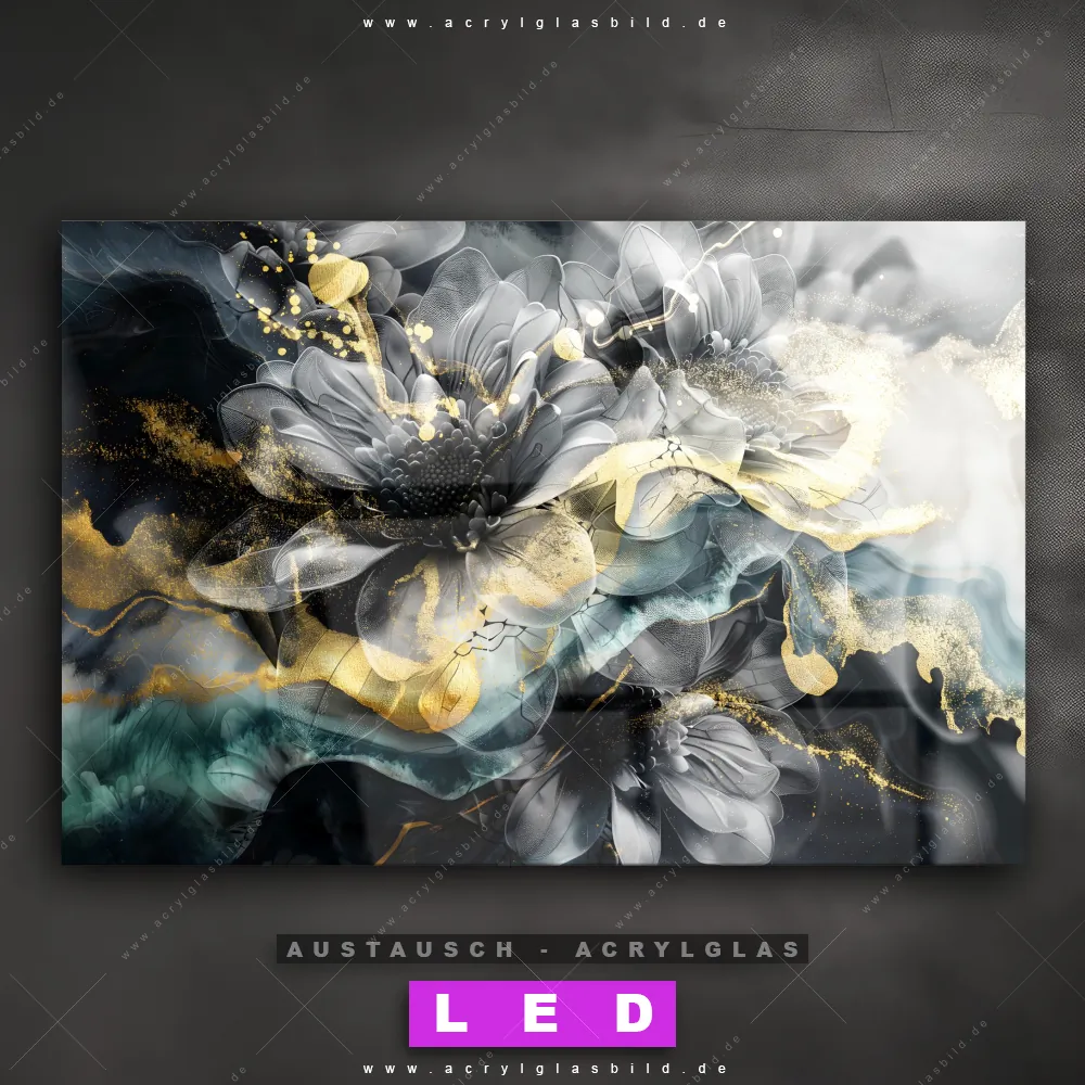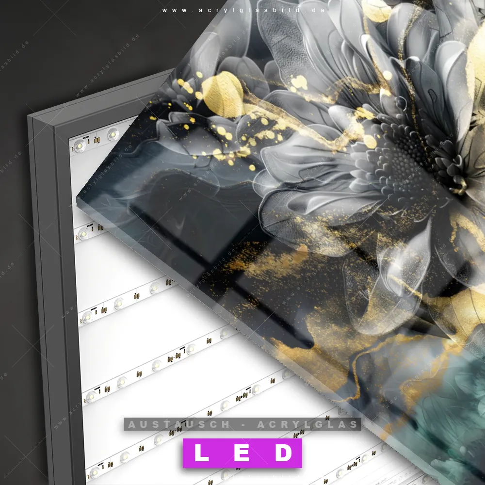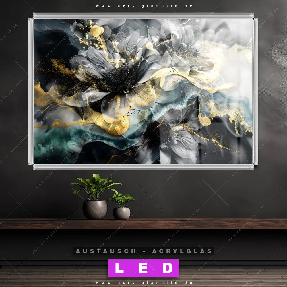 Begriffe wie Blumen, Pflanze, Natur, Blüten, Glitzer, Farbspritzer, Fluid Art haben dich auf der Suche nach deinem neuen Austausch-Acrylglasbild inspiriert? Dann sollte das Wechsel-Acrylglasbild Dunkle Blumen für dein bereits vorhandenes LED Acrylglasbild Canvalight® DIA den Weg zu dir finden.