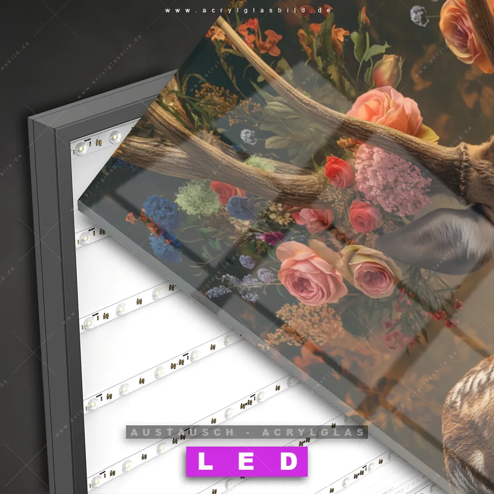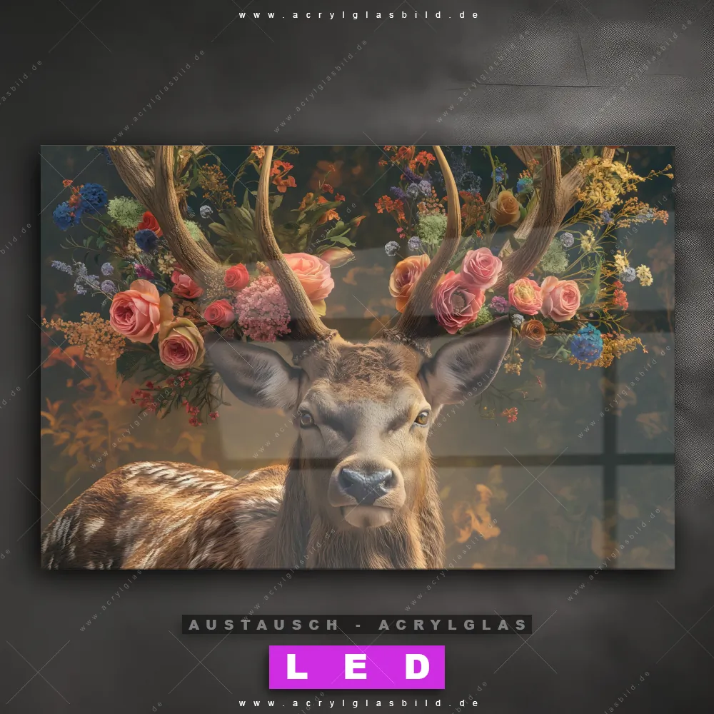 Wechsel-Acrylglas Canvalight® DIA | Hirsch mit floralem Geweih | Querformat