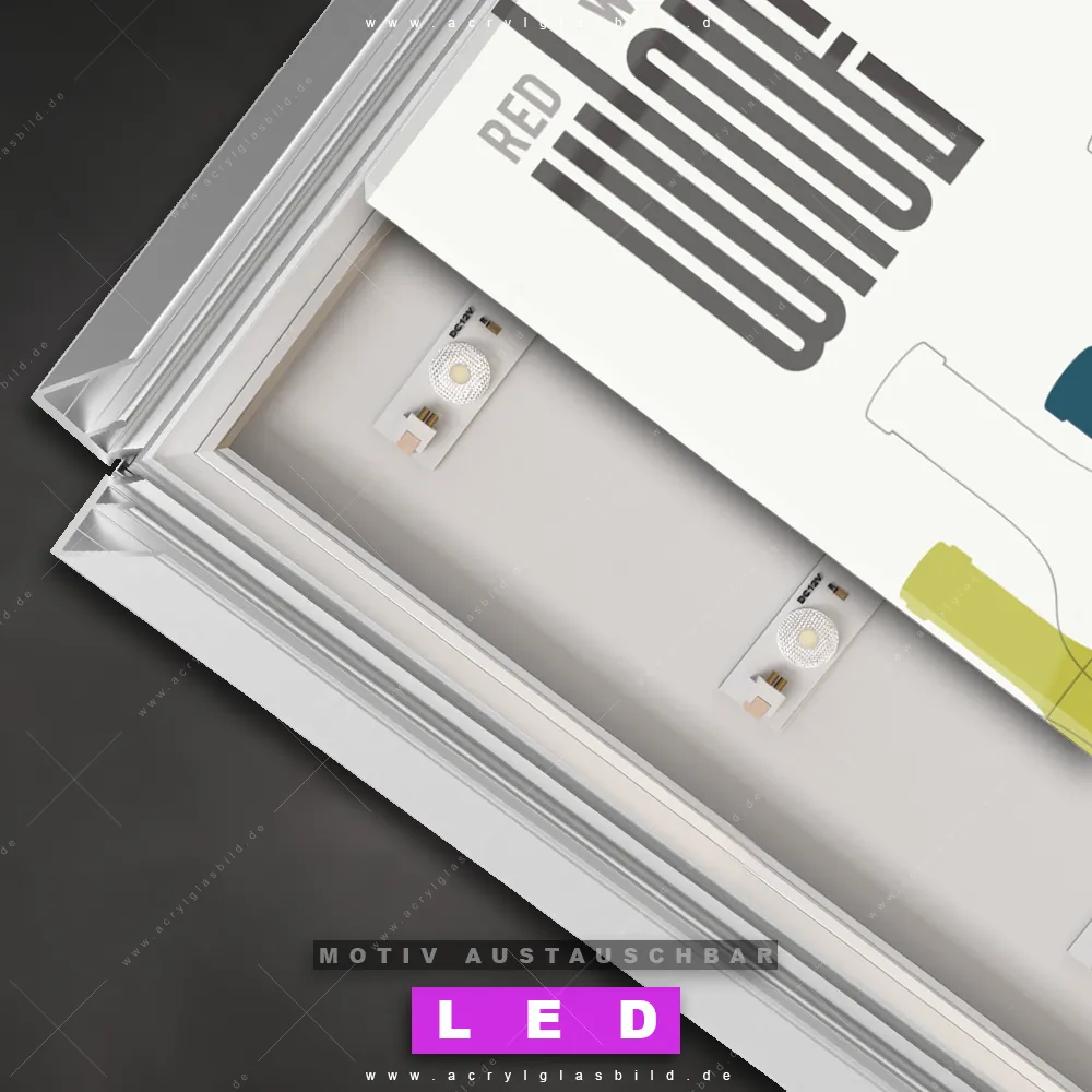 Du bist auf der Suche nach einem dimmbaren Essen - Trinken, Muster - Texturen LED Bild mit Fernbedienung und optionaler Farbtemperatursteuerung? Dann haben wir hier genau das richtige Wandbild mit LED Beleuchtung für dich: Unser Canvalight® DIA LED Acrylglasbild Flaschen & Gläser im Querformat mit austauschbarer bedruckter Acrylglas-Scheibe. Dieses Leuchtbild bringt sofort Partybeleuchtung in deine Räume!